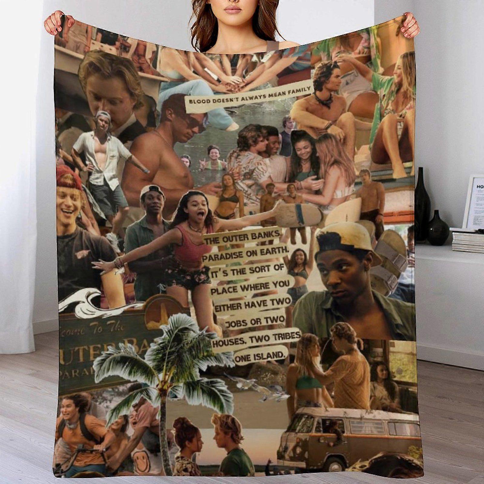 outer banks Flannel Cozy Blanket for Teens Outdoor Lounge Bed Quick Drying Hypoallergenic Soft Durable