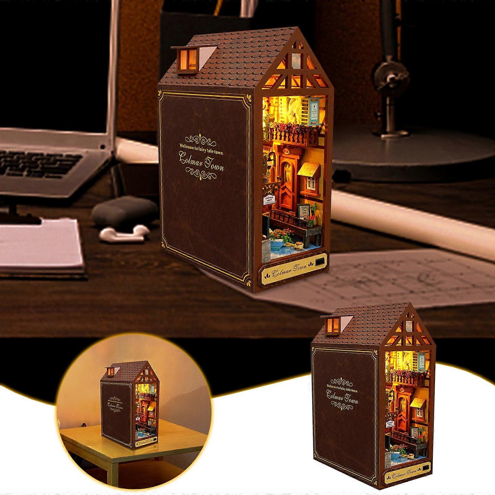 LED Book Kit Decorative Bookend Stand, Wooden Puzzle Bookend for Adults, Compatible with Booknook, Home Decor Ornaments, 40ml