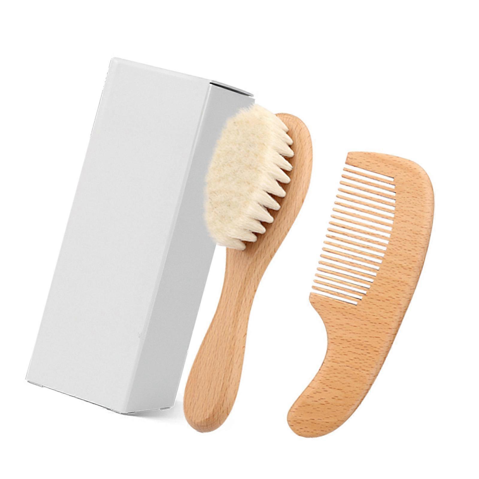 Soft Baby Hair And Scalp Brush Set Natural Beechwood And Wool For Gentle Cleaning And Nurturing Multicolor