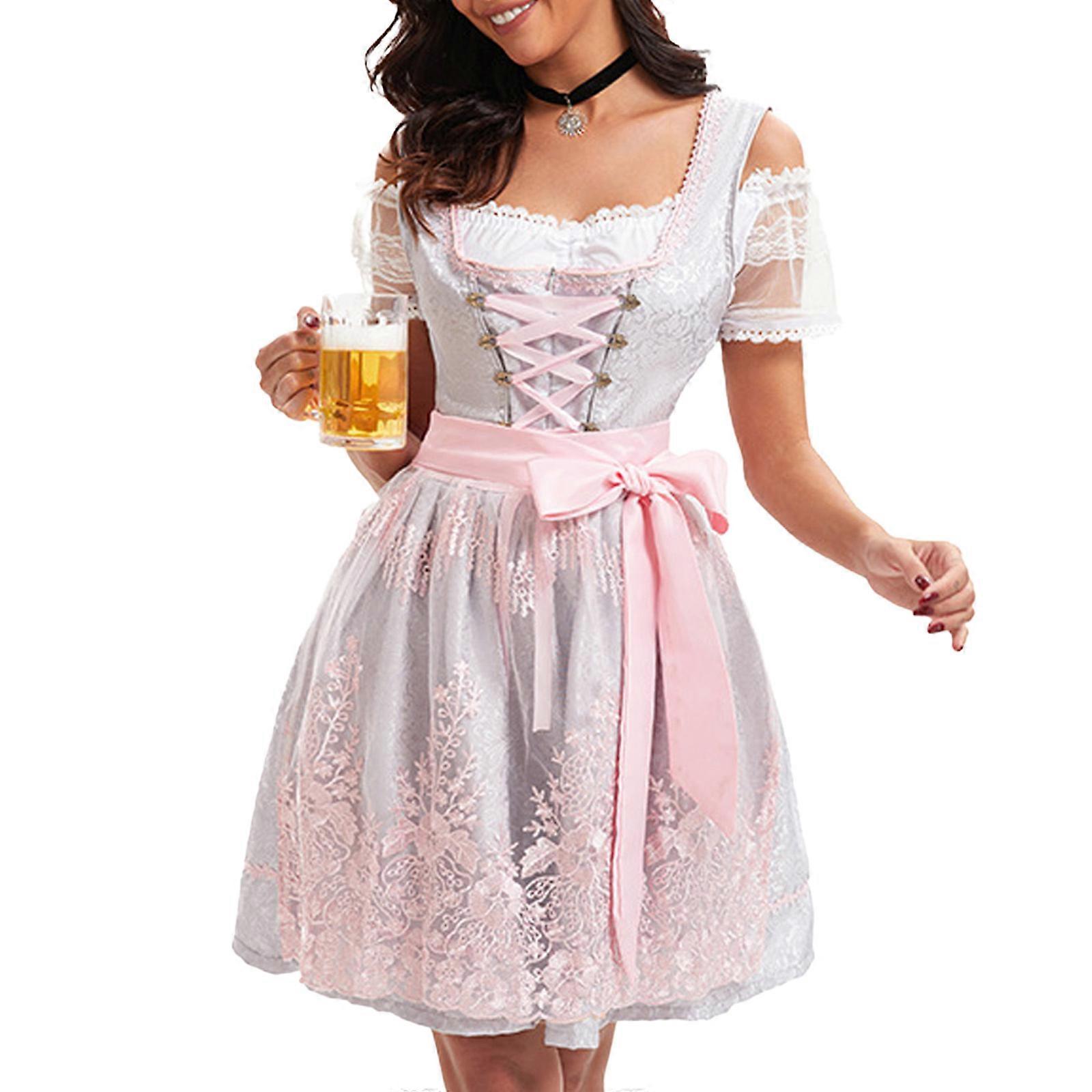 4Pcs German Bavarian Beer Festival Outfits Oktoberfest Costumes for Women Dirndl Dresses Blouse Apron Bows Ribbon Set XL