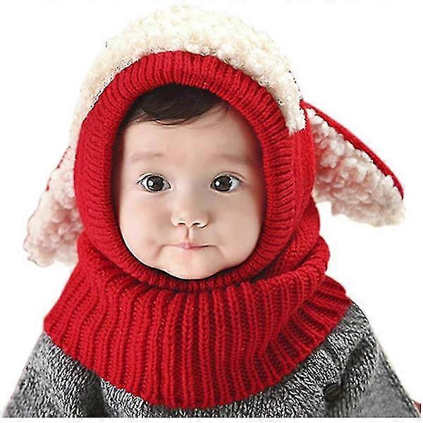 Baby Kids Warm Winter Knitted Plush Wool Hat Cute Earflap Hood Scarf Ski Cap Gift