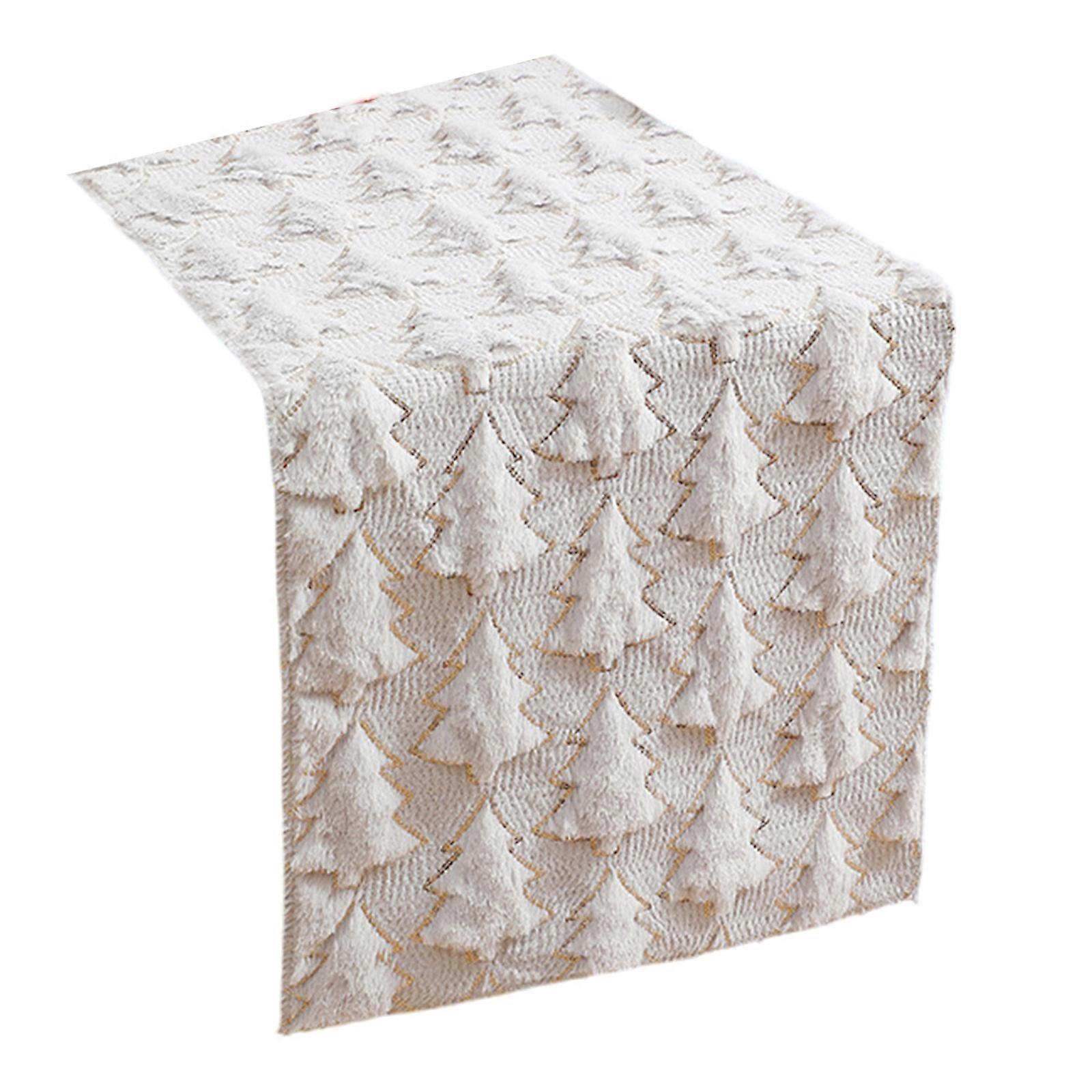 Christmas Quilted Sequins Table Runner With Plush Materials for Holiday Dining Decorations and Home Party Centerpiece 33 183 White
