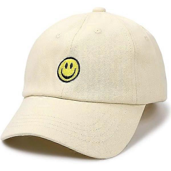Smile Face Baseball Cap for Toddler Kids Washed Funny Hats Adjustable Cute Caps for 3-12 Years Beige
