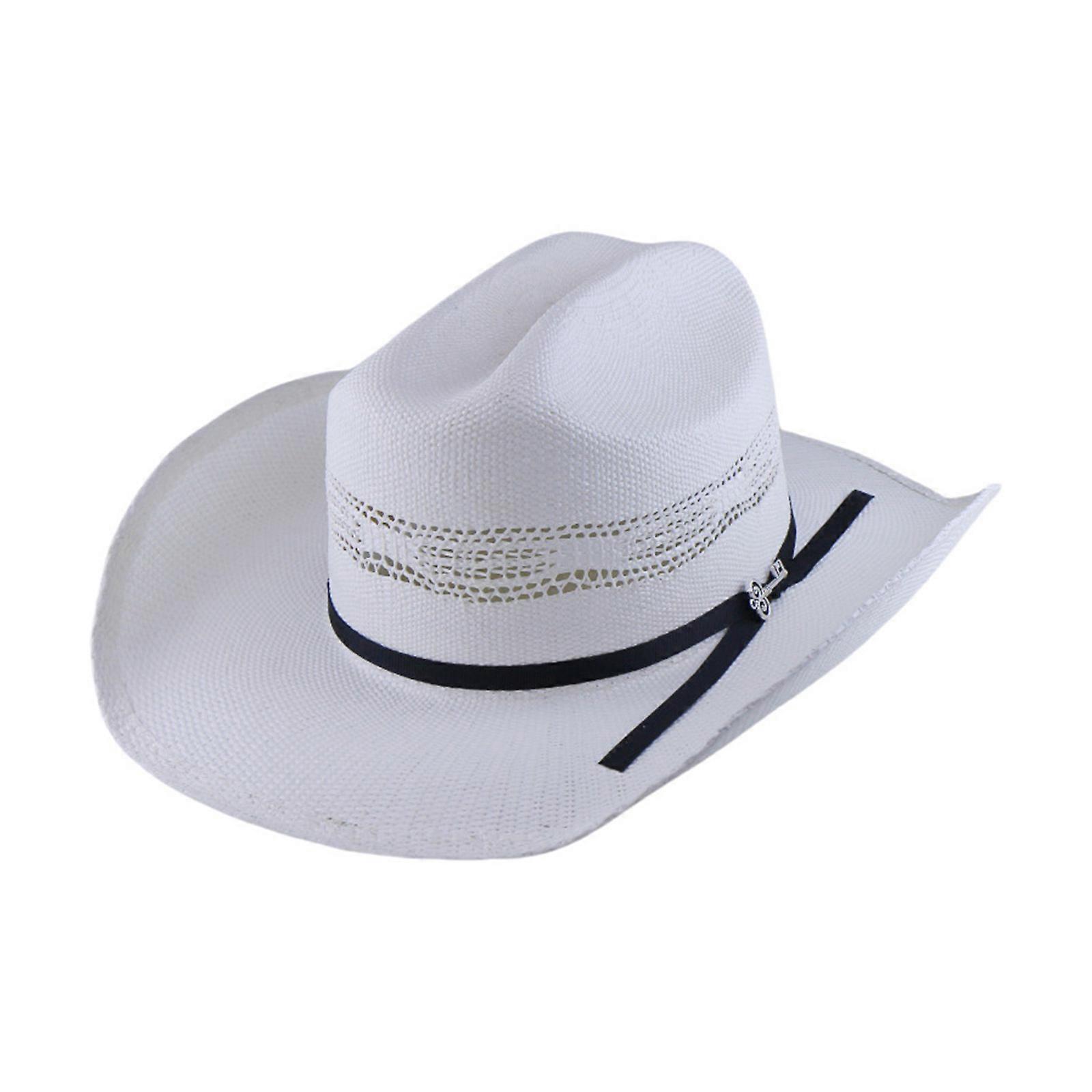 Adjustable Roll Brims Cowboy Straw Hat Unisex Sun Protective Hat For Adult Teens Travel and Music Festival Gathering White