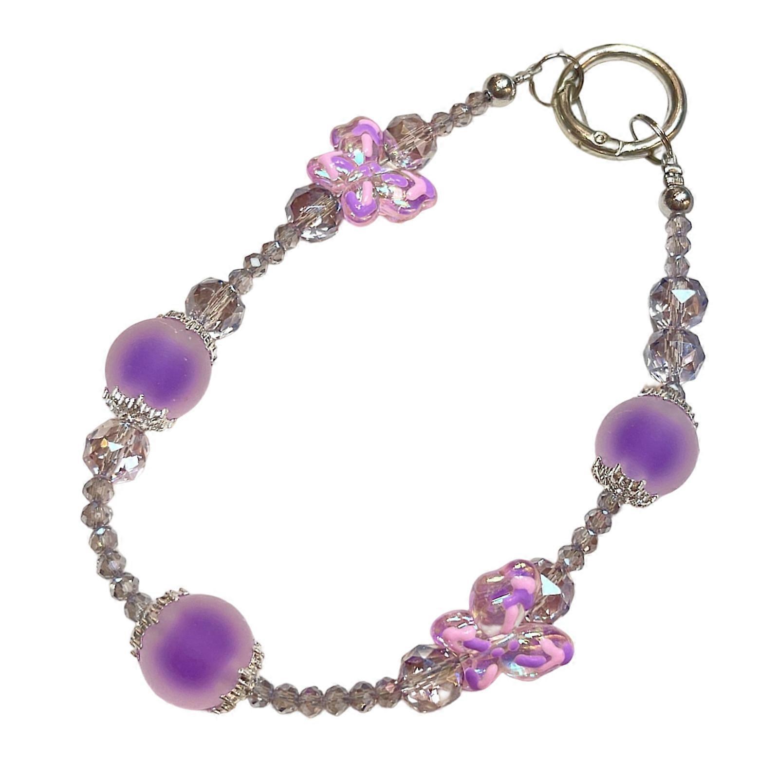 Eye Catching Mobile Phone Chain Handmade Beaded Cellphone Lanyard For Women Girls Telephone Strap Jewelry Drop-resistant Pur ple