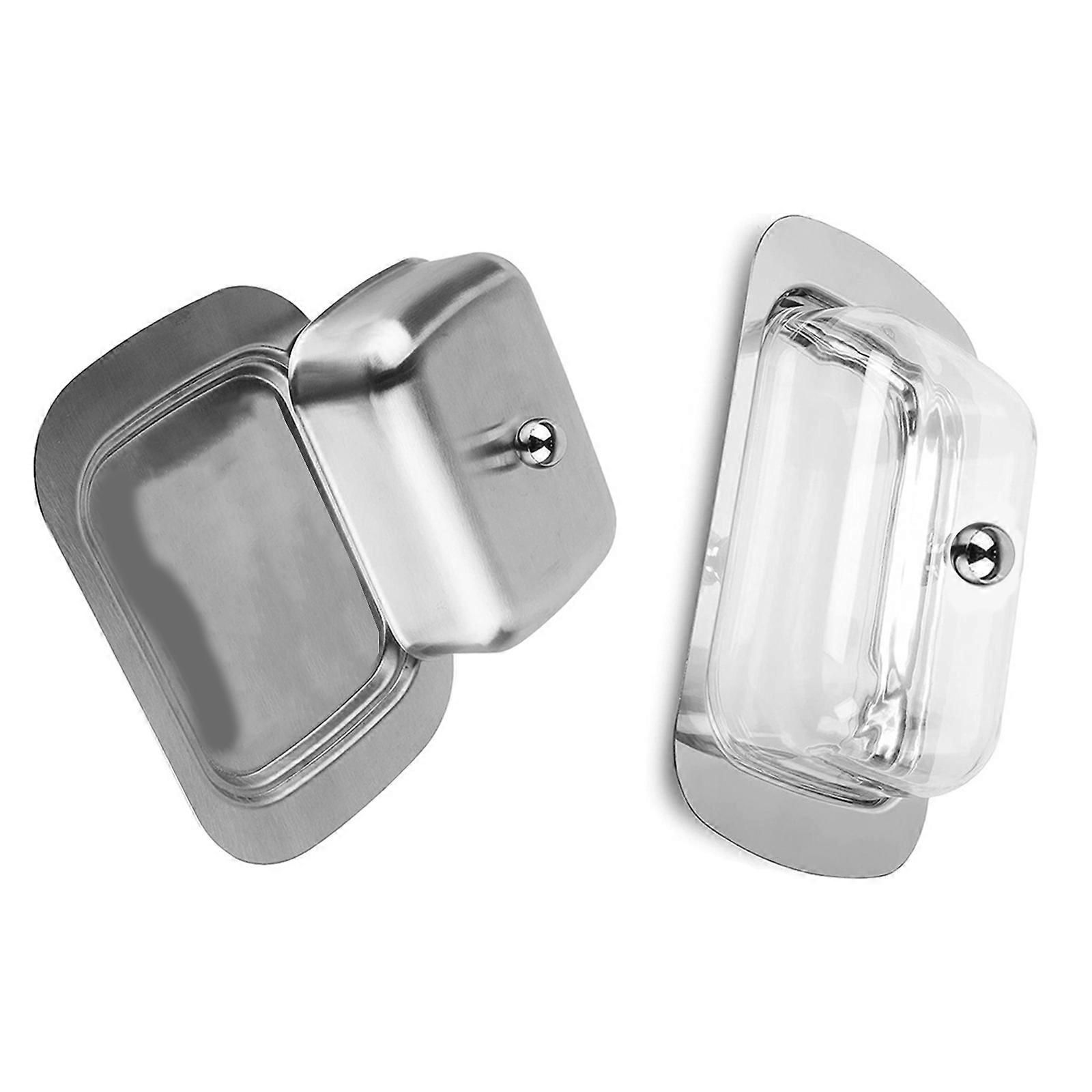 Stainless Steels Butter Container With Transparent Lid For Kitchen Storage Cheese Dish Home Accessories Multicolor