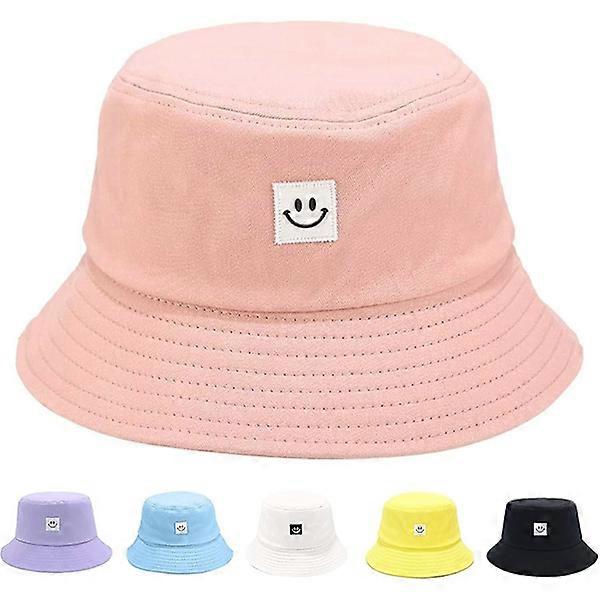 Kids Sun Hat Smiling Face Bucket Hat For Girls Boys Summer Sun Protection Cotton Unisex Beach Cap