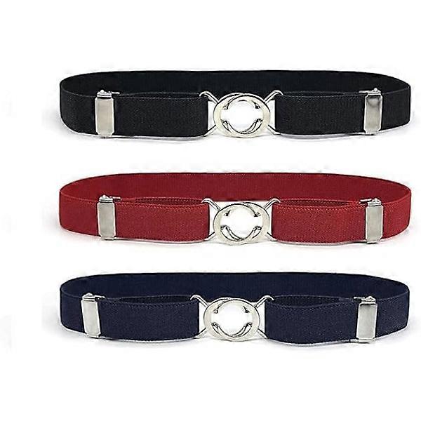 3-Pack Adjustable Kids Belts Set of 3 adjustable elastic stretch belts for boys and girls (Black + Blue + Red) Size: 2.5 x 80 cm (W x L), Recommended Age: 3-13 years Material: Polyester + Spandex + Metal Buckle Closure: Buckle Features: 3 elastic stretch belts for kids with two adjustment buckles. Suitable for various occasions: birthdays, weddings, parties, school events. Ideal for: pants/jeans/suits/shorts. Note: There may be slight color variations due to lighting, angles, and screen settings. Measurements are approximate and may vary by 1-2 cm due to manual measurement.