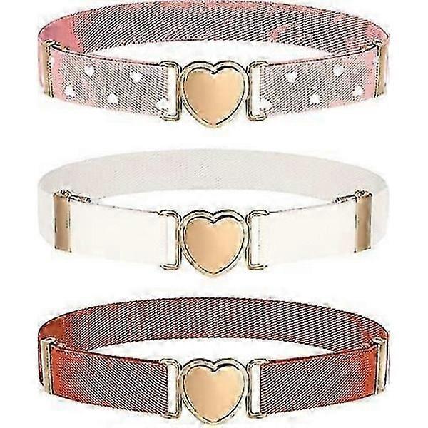 3 Pieces Adjustable Stretch Belts Elastic Heart for Girls and Children
