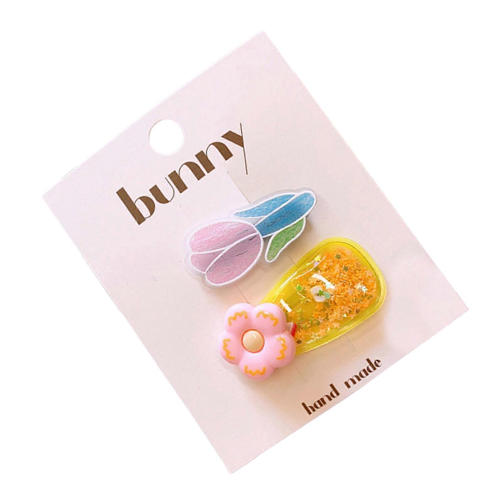 2pcs Plastic Hair Clip Flower Glitters Detailing NonSlip Hair Pin For School Girl Outdoor Activity Headwear Yellow