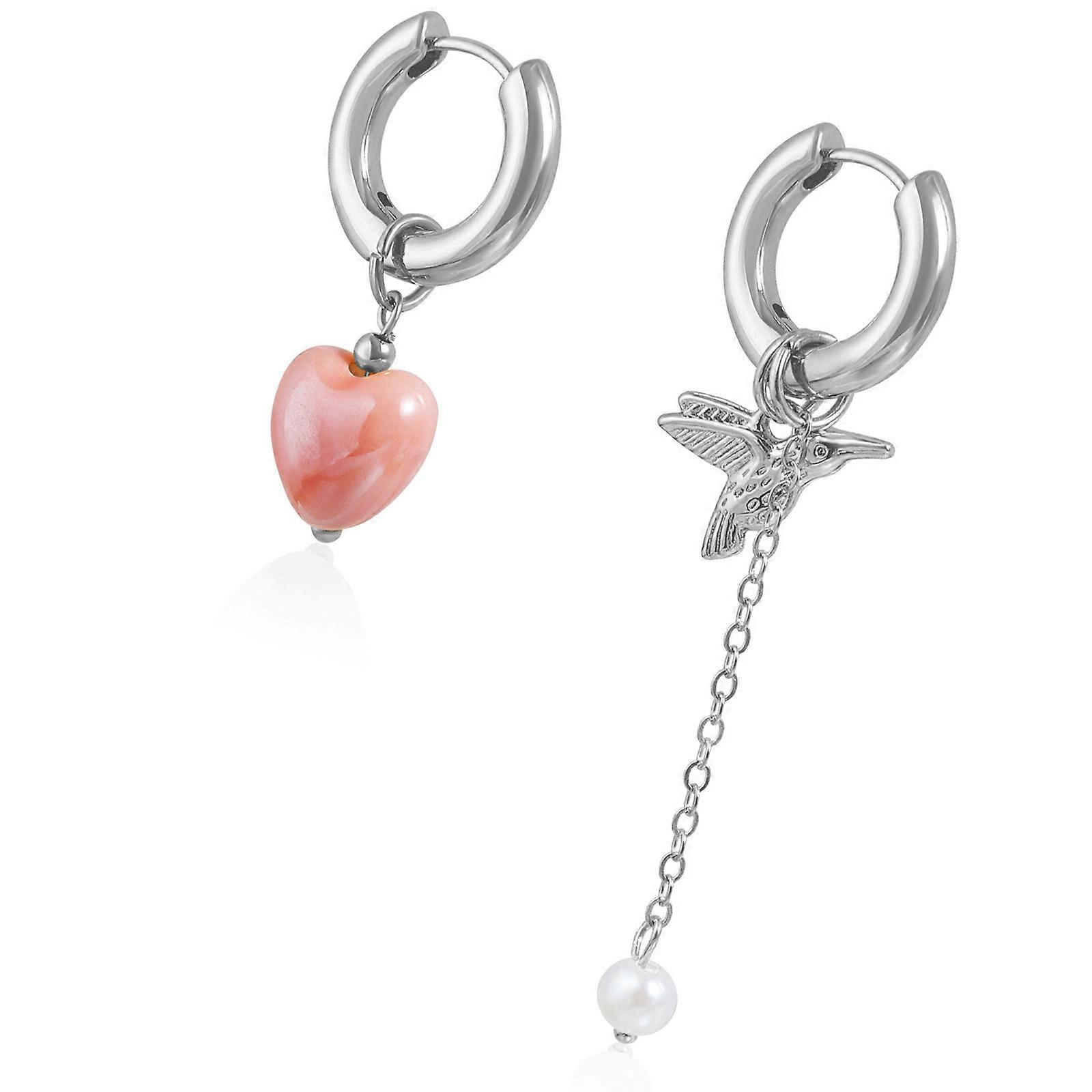 Unique Asymmetric Heart Bird Earrings Artistic Vintage Jewelry Hypoallergenically Metal Gift for Girlfriend Best Friend Multicolor