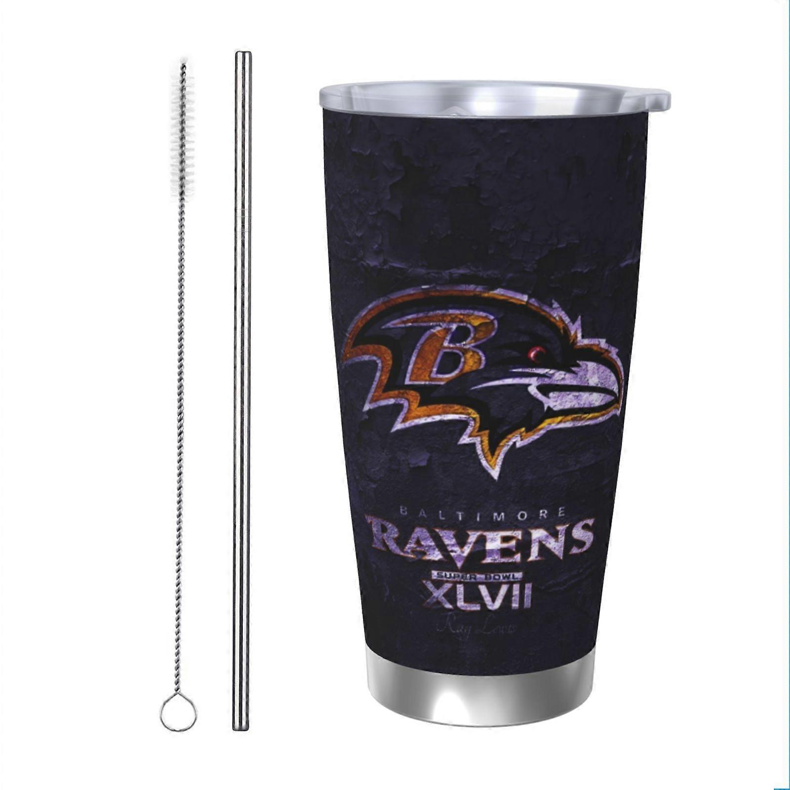 Ravens Football Team 304 Stainless Steel Thermos Cup 20oz with Lid & Straw, Compatible with Car Cup, for Hot & Cold Drinks
