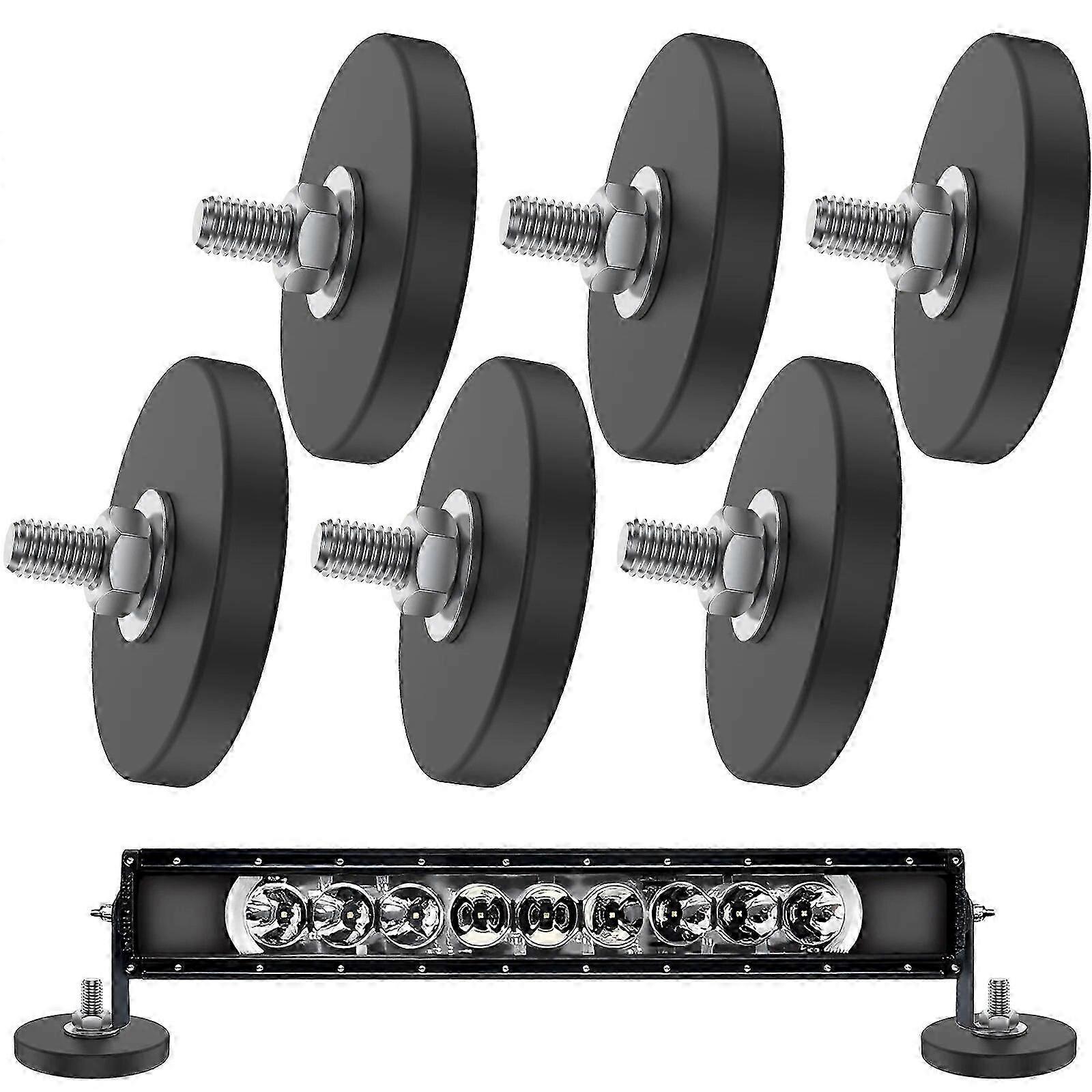 6pcs Magnet Base M6 Thread Stud Magnet 17 Inch Round Neodymium Mounting Magnet Anti-scratch Strong Magnet For Lighting Bar