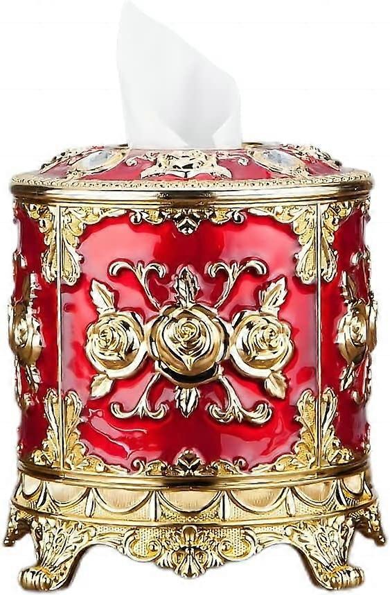 Creative Embossed Rose & Rhinestones Acrylic Tissue Cover Holder, Compatible with Gold + Red Napkin Dispenser for Bathroom, Bedroom, Office, Car