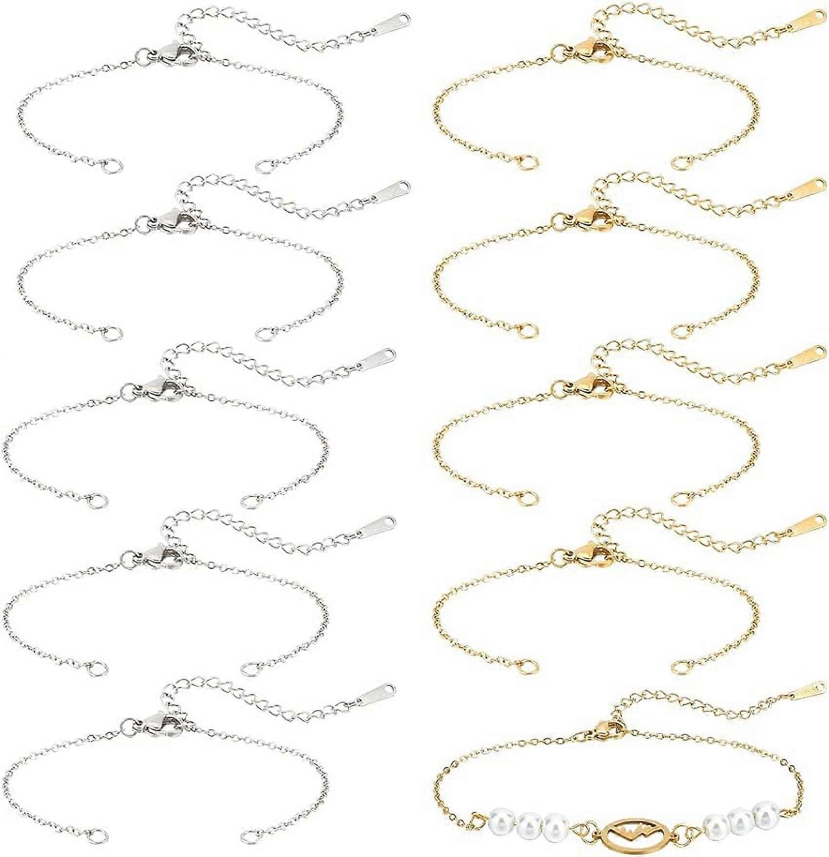 20Pcs 2 Colors Adjustable Bracelet Chains Hypoallergenic Stainless Steel Bracelet Semi-Finished Bracelet Making with Lobster