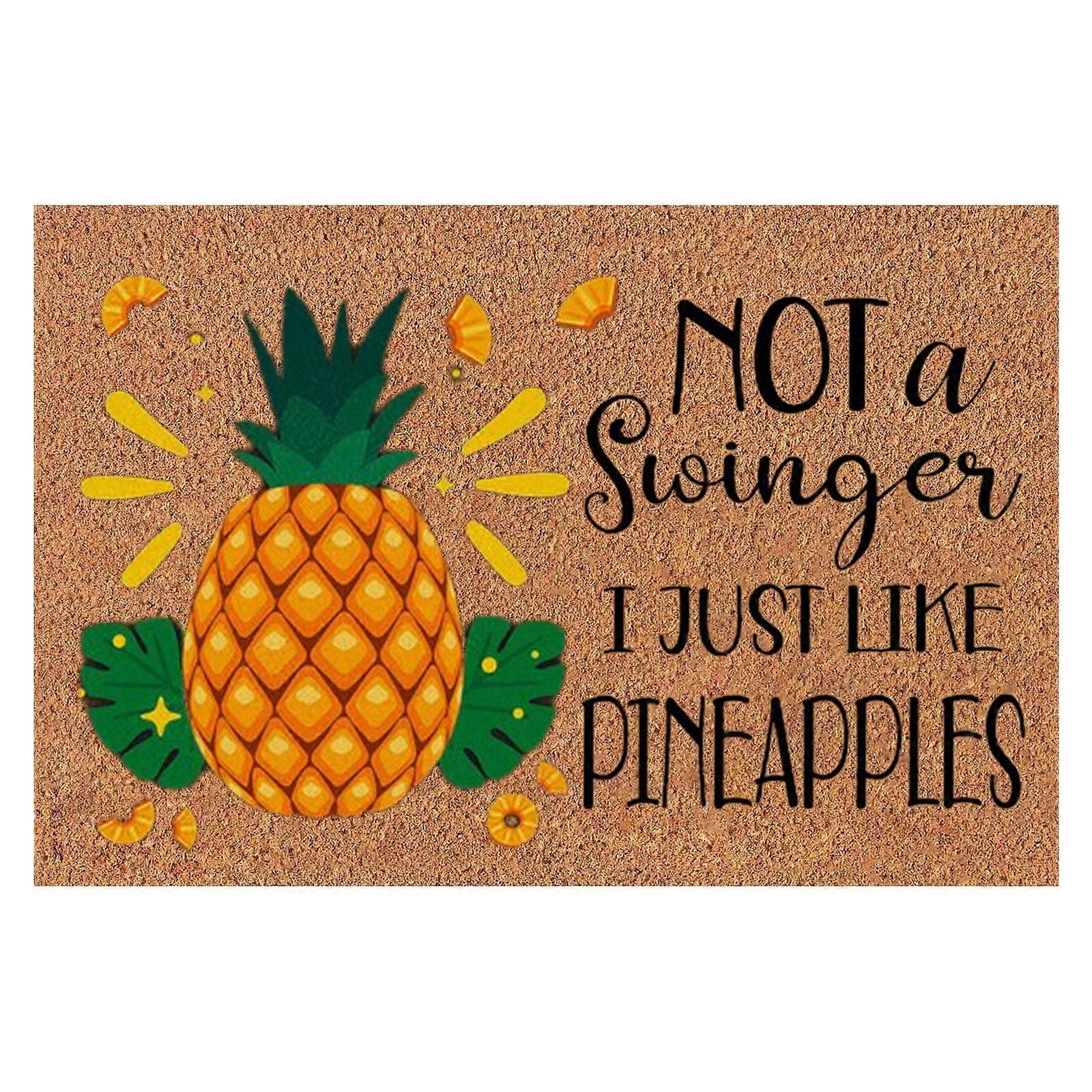 Fun Pineapple Letter Printed Door Mat, Slip-Resistant Polyester Floor Mat for Front Door, Porch, Outdoor Entrance Compatible with Standard Sizes