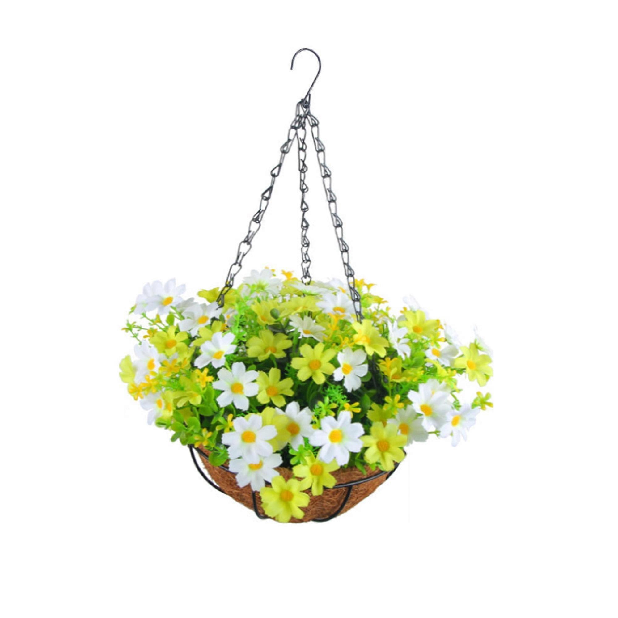 Decorative Artificial Hanging Flowers in Basket, Fake Silk Plants with Coconut Lining, Compatible with Home Garden Porch Patio Decor