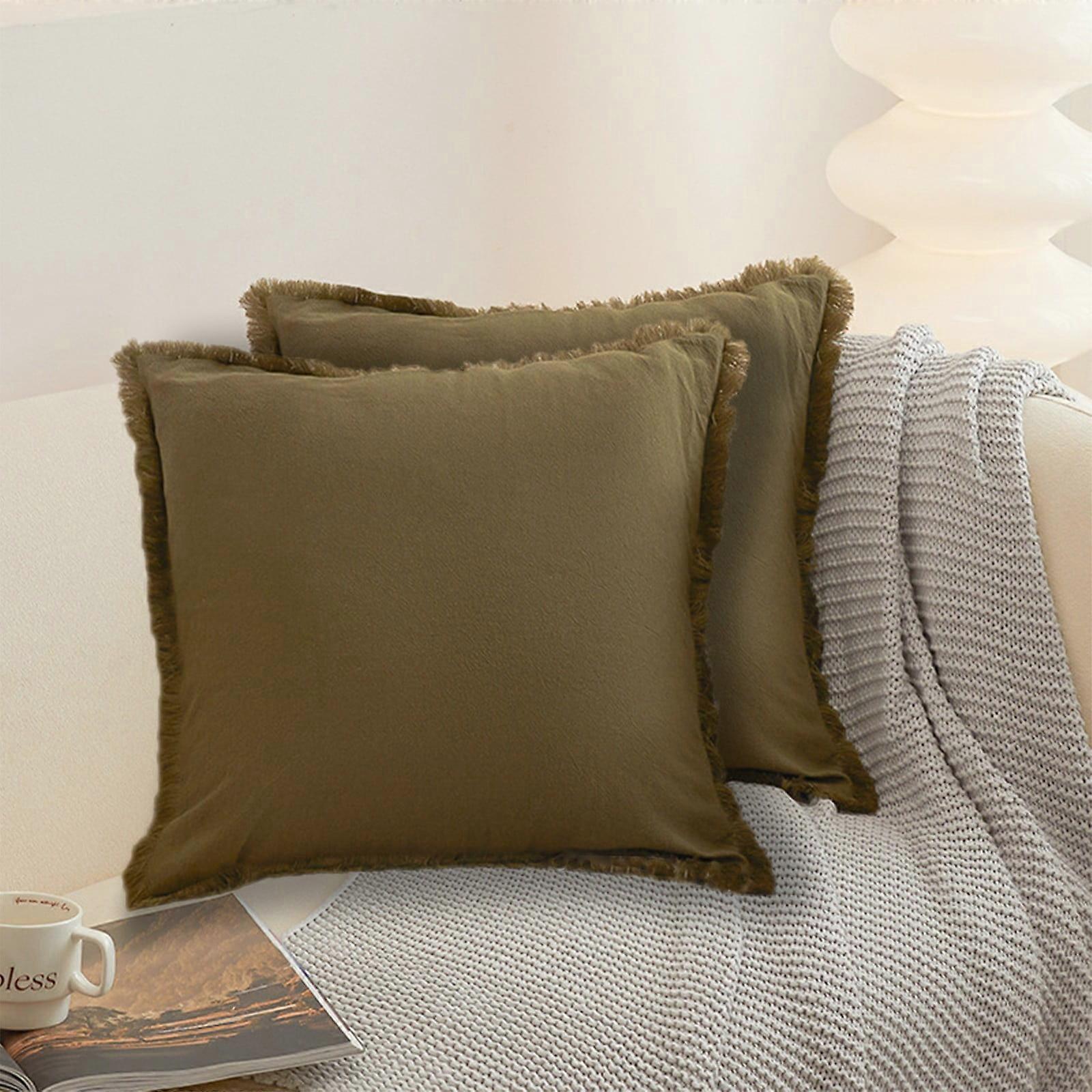 WJSXC Set of 2 Linen Fringed Throw P-illow Covers,Sofa Bed Living Room Home Decor, Decorative Pillowcase with Tassel Boho Green