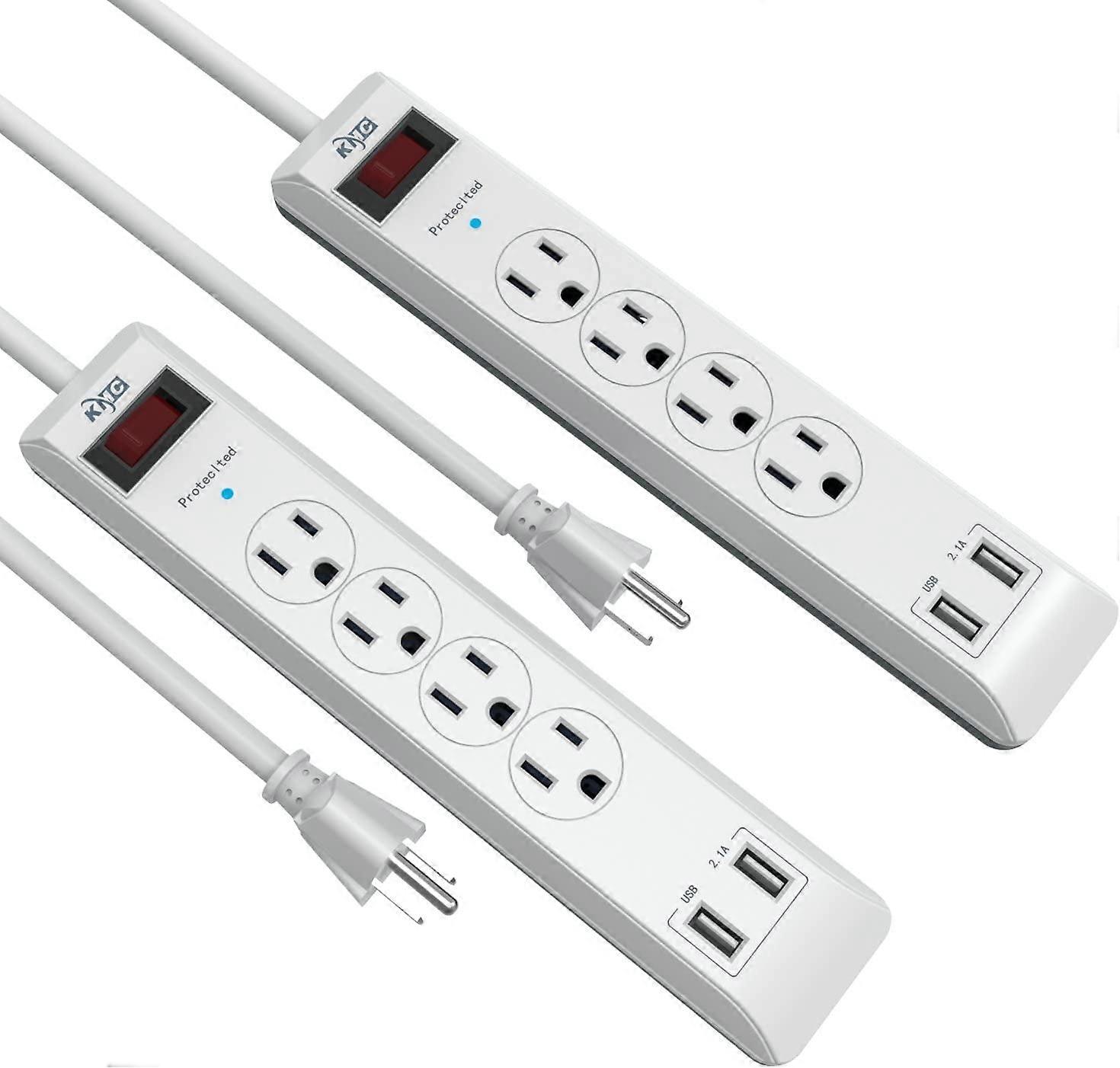 4-Outlet Surge Protector Power Strip 2-Pack, Overload Protection, 4-Foot Cord with 2.4A 2-Port USB Ports, ETL