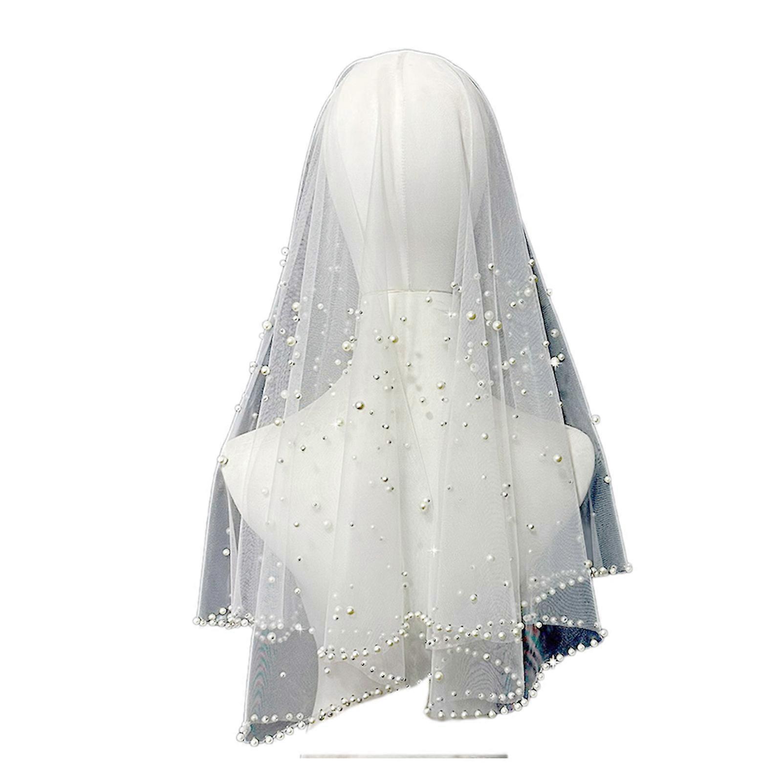 Bridal Veil Bride Elaborate Pearls Beaded Encrusted Bachelorette Party Bride Veil Party Head Scarf Head Covering Multicolor