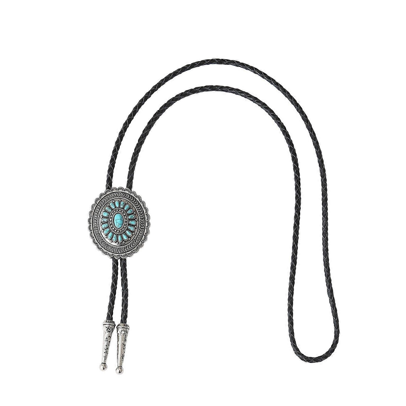 Braided Shoestring Bolo Tie with Turquoise Fretwork Charm Cowboy Necktie Necklace Country Bolo Tie Cowboy Multicolor