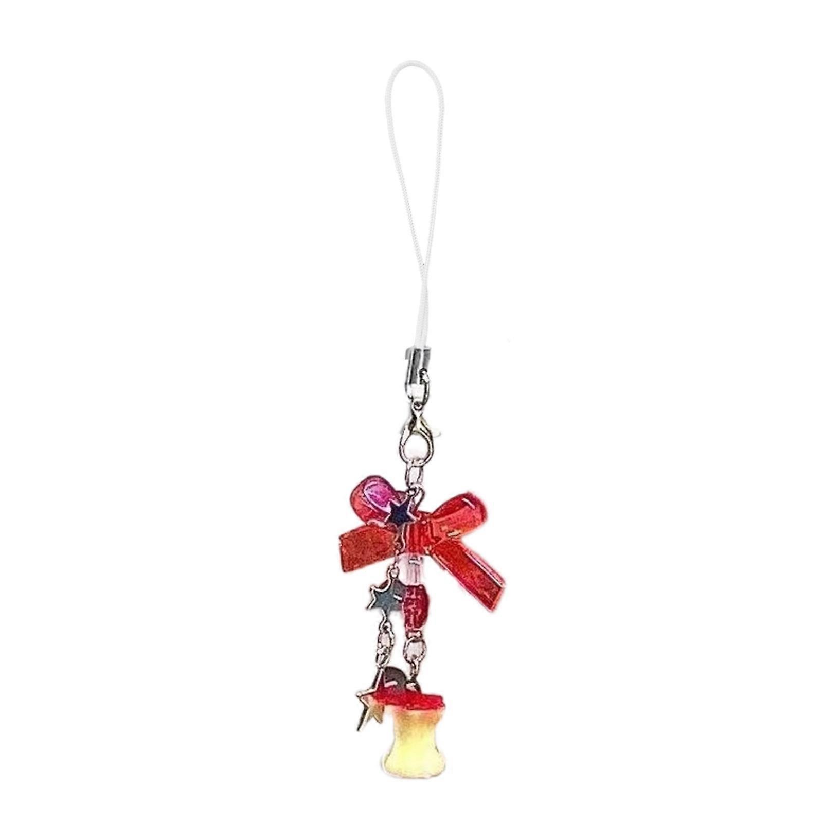 Fashion Fruit Core Bowknot Pendant Phone Straps Lanyard Pocket Keychain Strap Backpack Charm Car Key Decoration Chain Multicolor