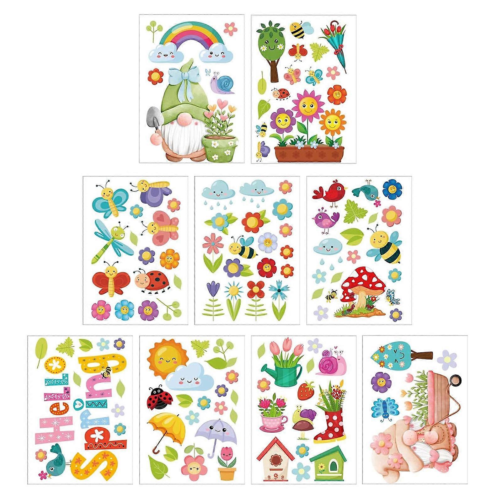 Spring Window Clings Double Side Flower Butterfly Window Stickers for Glass Window Anticollision Static Window Decals Multicolor