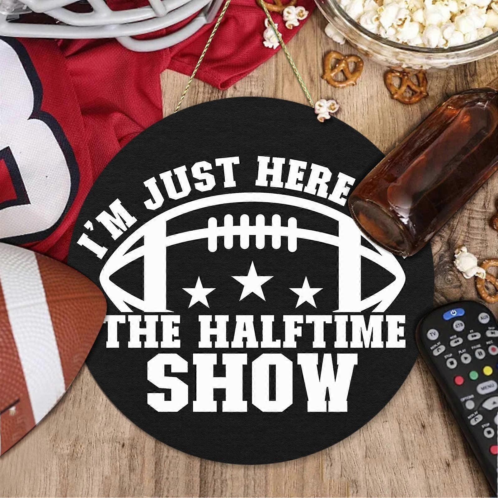 Football Theme Door Decor, Compatible with Farmhouse Porch, Rustic Wooden Round Hanging for Outdoor Indoor Entryway, Housewarming Celebration