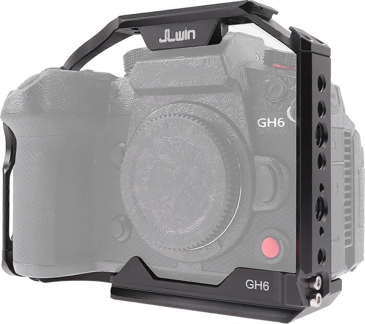 foto4easy Camera Cage for compatible with Panasonic Lumix GH6 DSLR Camera with NATO Rail 1/4 inches 3/8 inches Screws and Cold Shoe