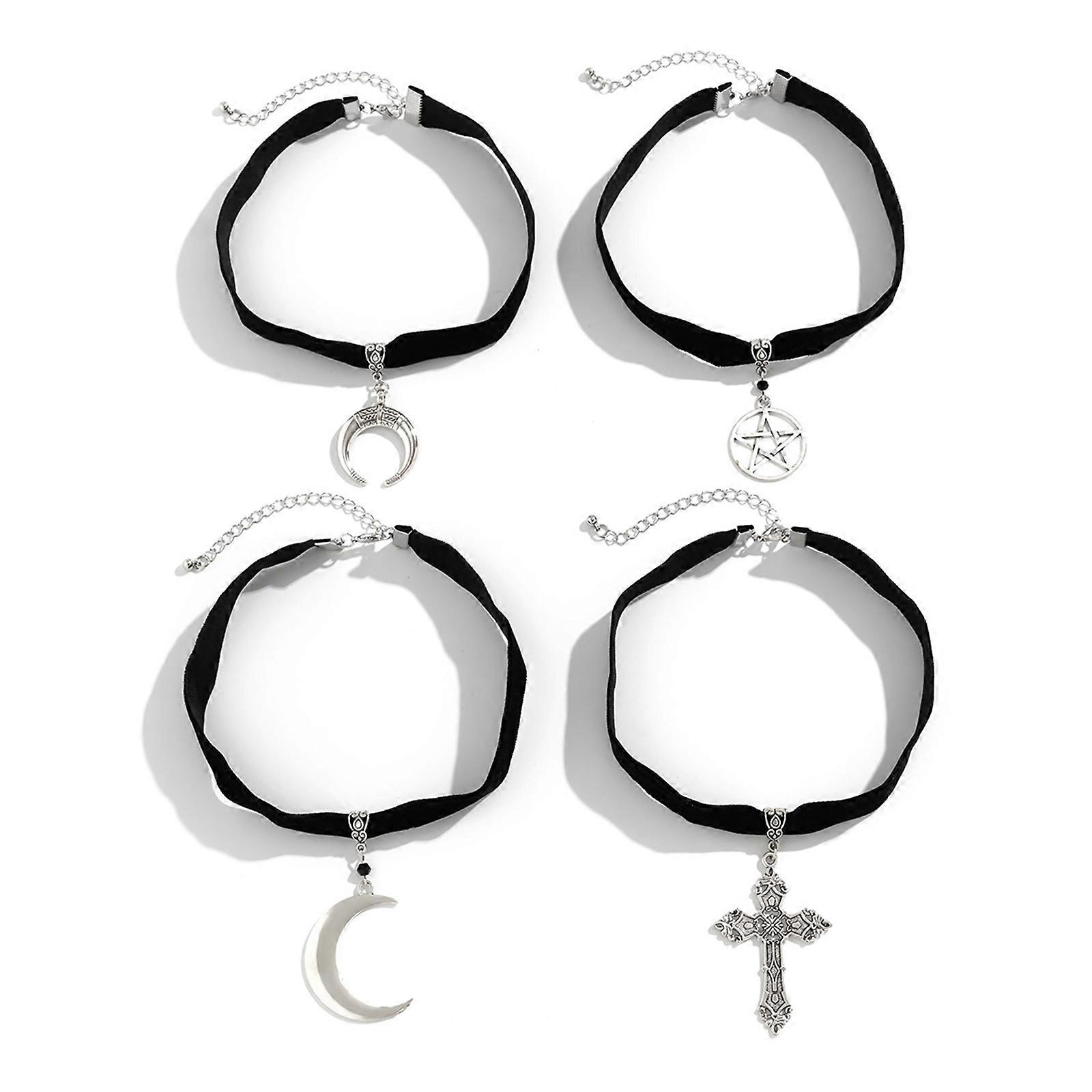 4Pcs Trendy Crucifix Pendant Choker Star Moon Shaped Necklace Punk Style Neckchains for Fashionable Individuals Multicolor