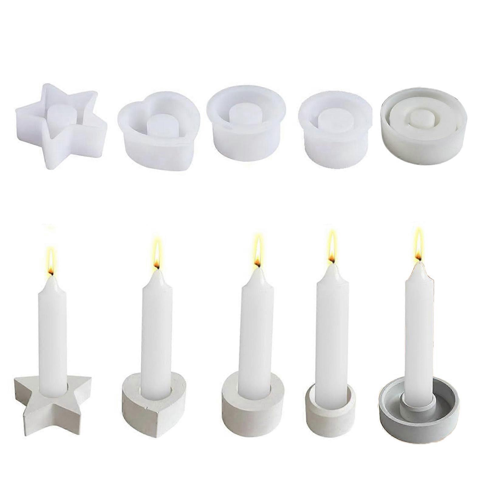 5xGeometrical Round Candlestick Silicone Molds Heart Candle Holder Mould Epoxy Resin Casting Mold DIY Decoration Home Multicolor