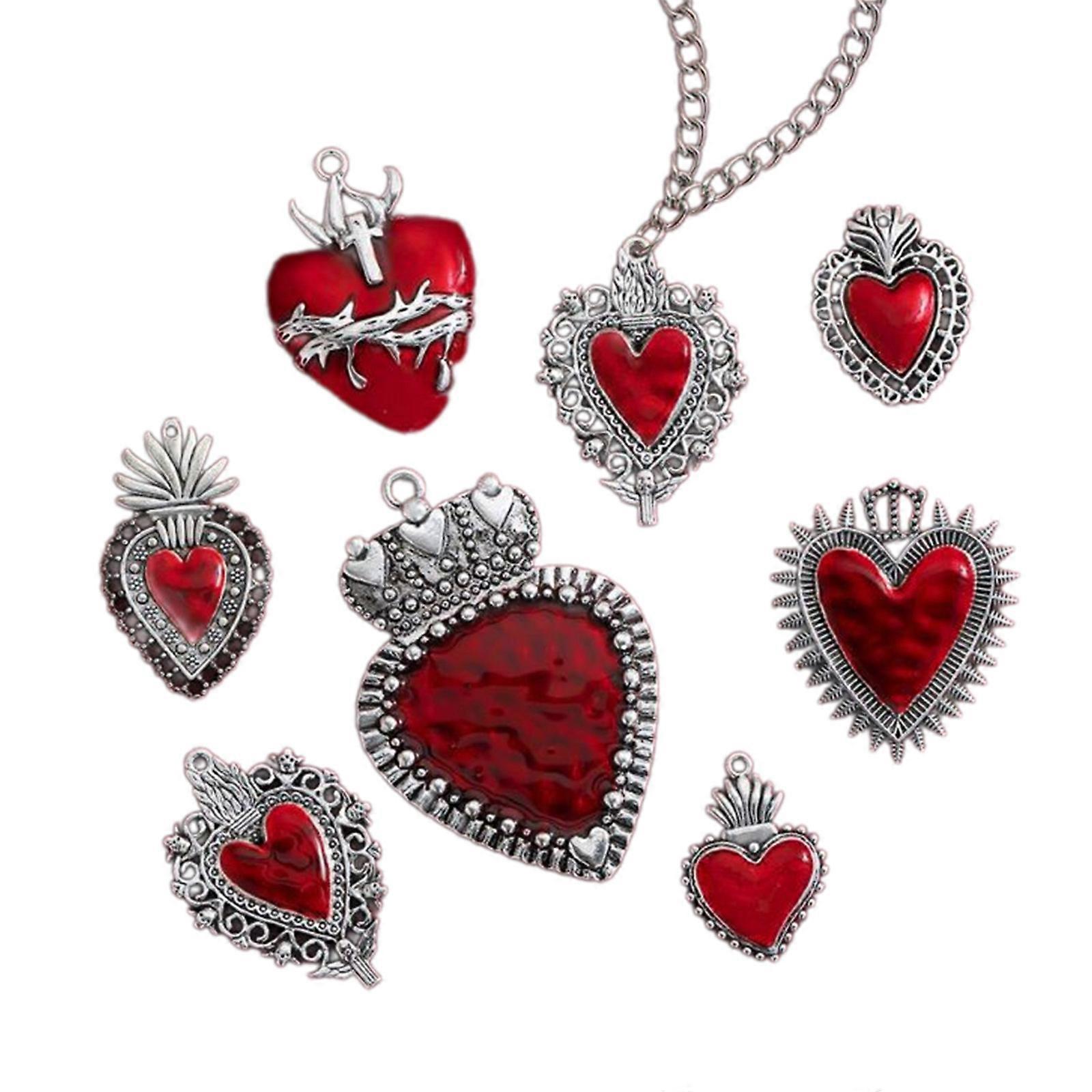 7 Pcs Vintage Metal Heart Pendant Gothic Heart Dangle Charm Jewelry DIY Supplies for Necklace Bracelet Earring Making Multicolor