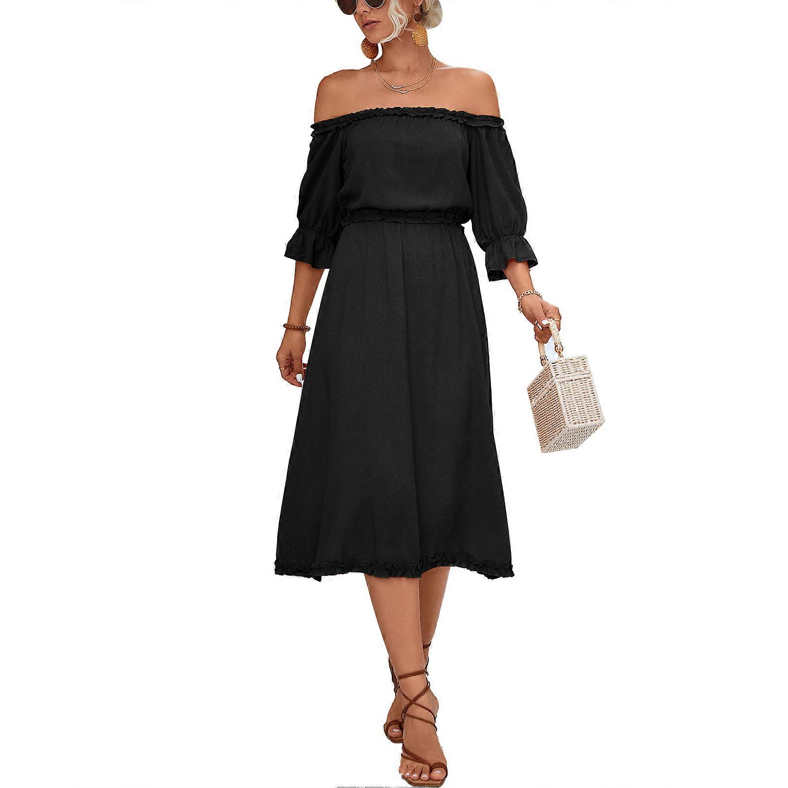 Off Shoulder Ruffled Dress Pure Color Elegant Flowy Soft Fashion Casual Off Shoulder Dress for Women