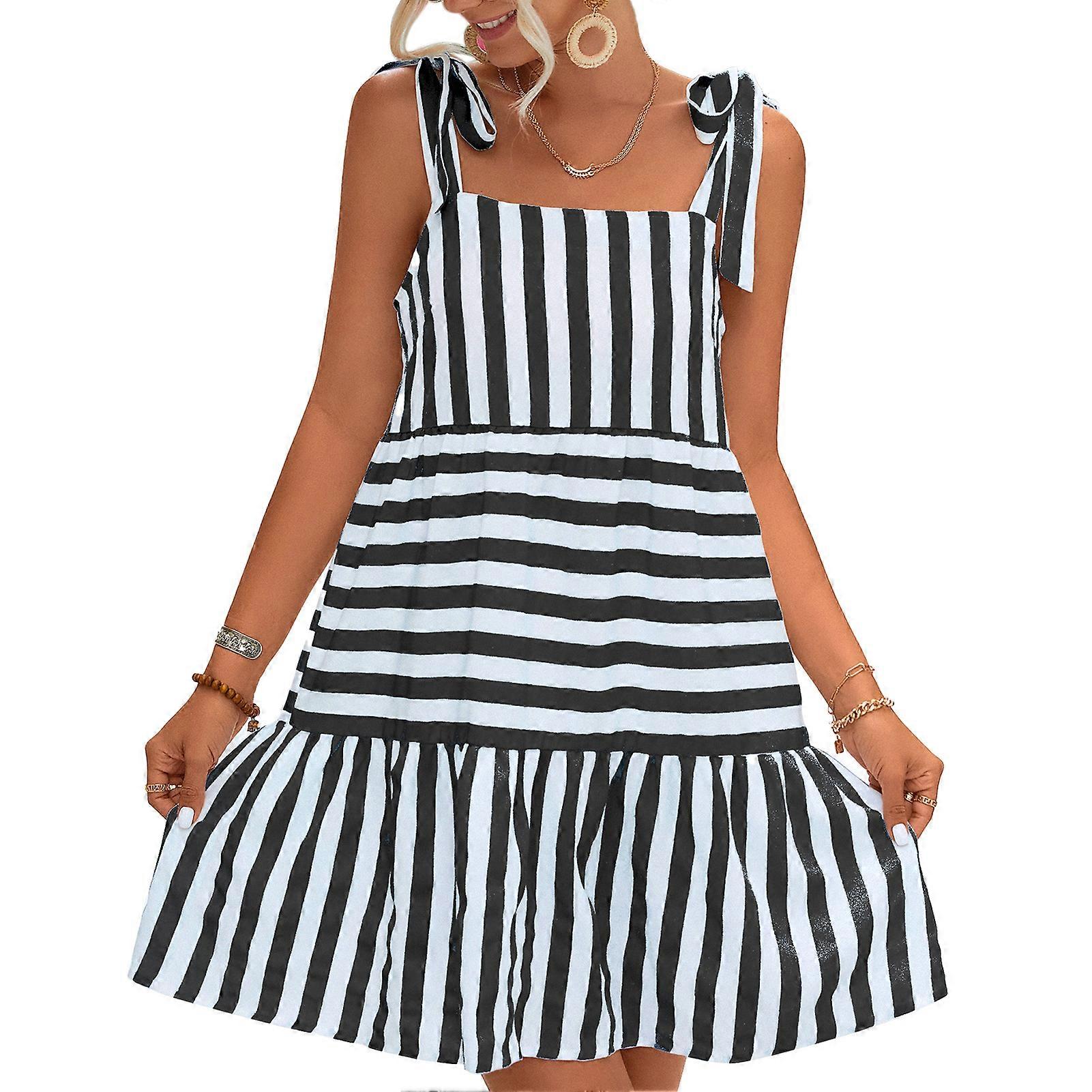 Striped Patchwork Sleeveless Adjustable Strap Loose Causal Striped Dress for Women Spring Summer