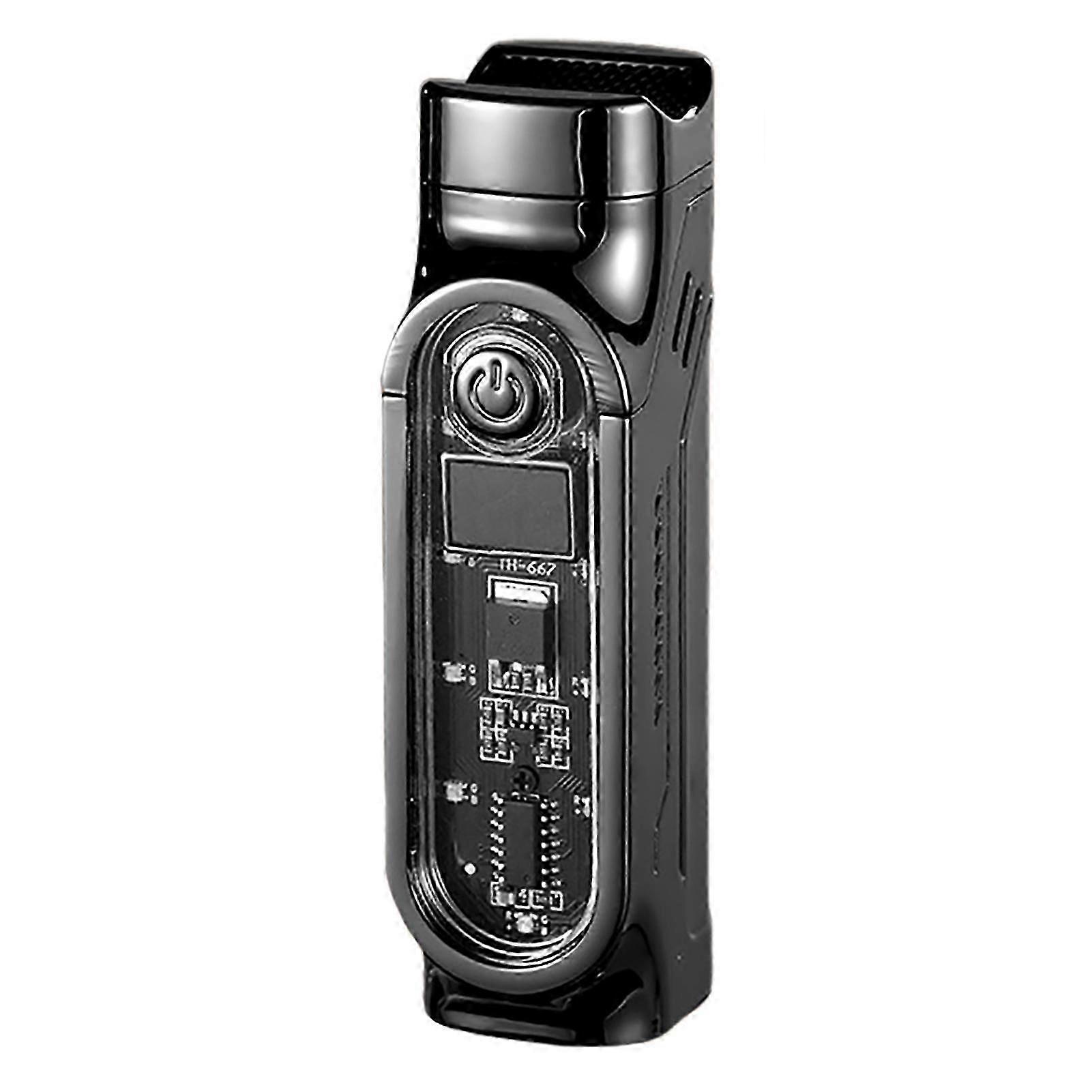 Features: Professional Cigasr Lighter: Specifically designed for lighting cigars with-precision.Triple-Jet Flame: Features three powerful, focused flames for quick and even ignition.Powerful Ignition: Ensures a strong and reliable flame every time, even in challenging conditions.Windproof Performance: The sturdy jet-flames offer excellent resistance against wind, ideal for outdoor use.Portable & Compact Design: Easily fits in your pocket or bag, perfect for on-the-go use.Multi-functional Use: Versatile for lighting cigars, cigarettes, candles, and more.Sturdy Construction: Built for home use, suggesting a sturdy and long-lasting design.Easy to Operate: User-friendly design ensures simple and convenient ignition.Household & Everyday Essential: A reliable and powerful lighter suitable for daily tasks around the home.Notice:1.Actual color may be slightly different from the image due to different light effect2.Please allow 1-3cm deviation due to manual measurement Description:Type: Type-C charging/circulating chargingSize: 92x25mmPackage List:1x Lighter(without Gas)
