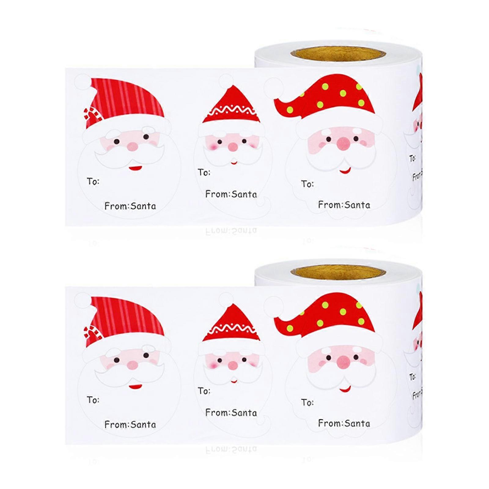 2 Rolls Santa Stickers Christmas Labels Self-Adhesive Stickers Christmas Sticker Water Bottles Stickers for Card Multicolor
