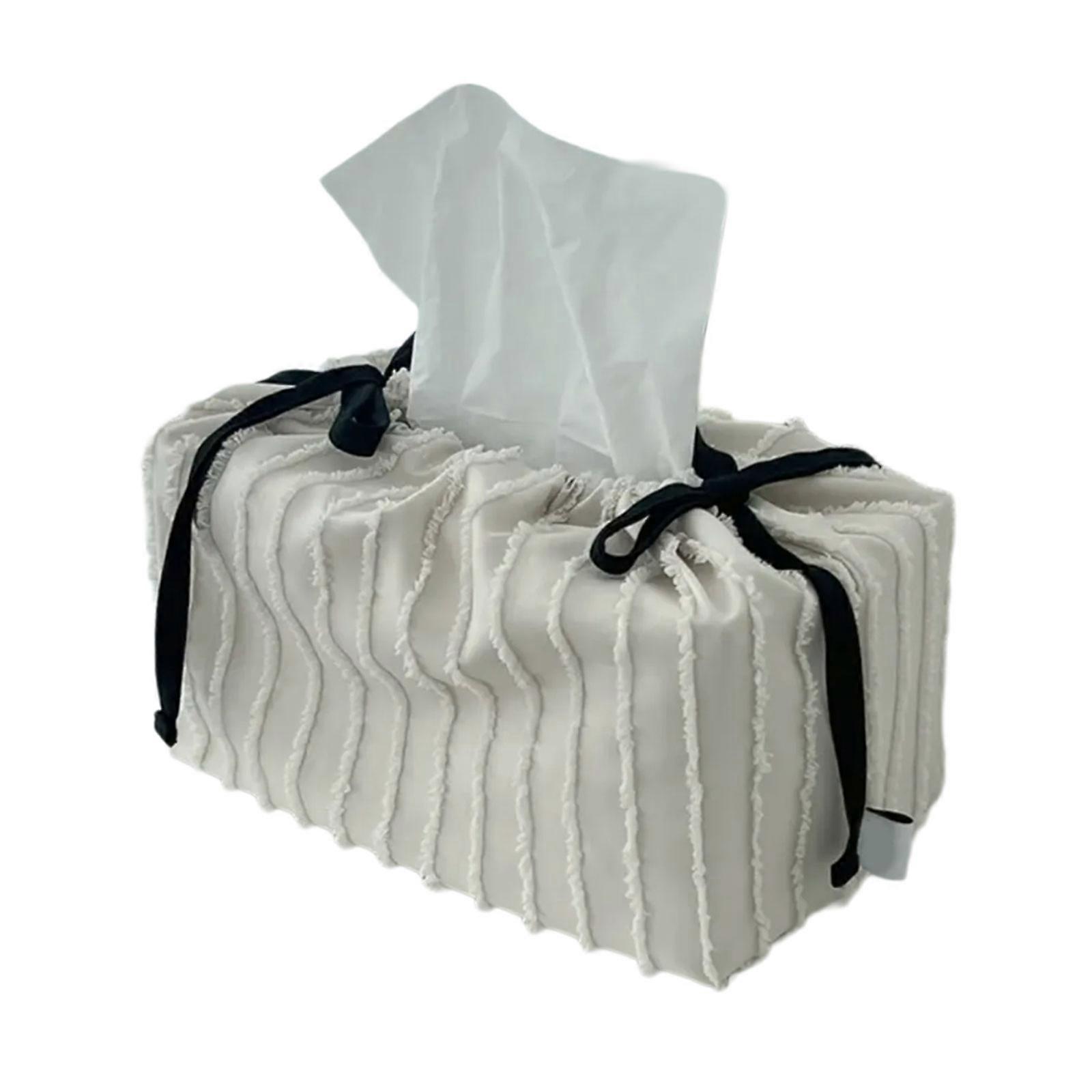 Stylish Tassels Trimmed Fabric Tissue Box Cover Multipurpose Home Decoration Storage Container For Tabletop Display White