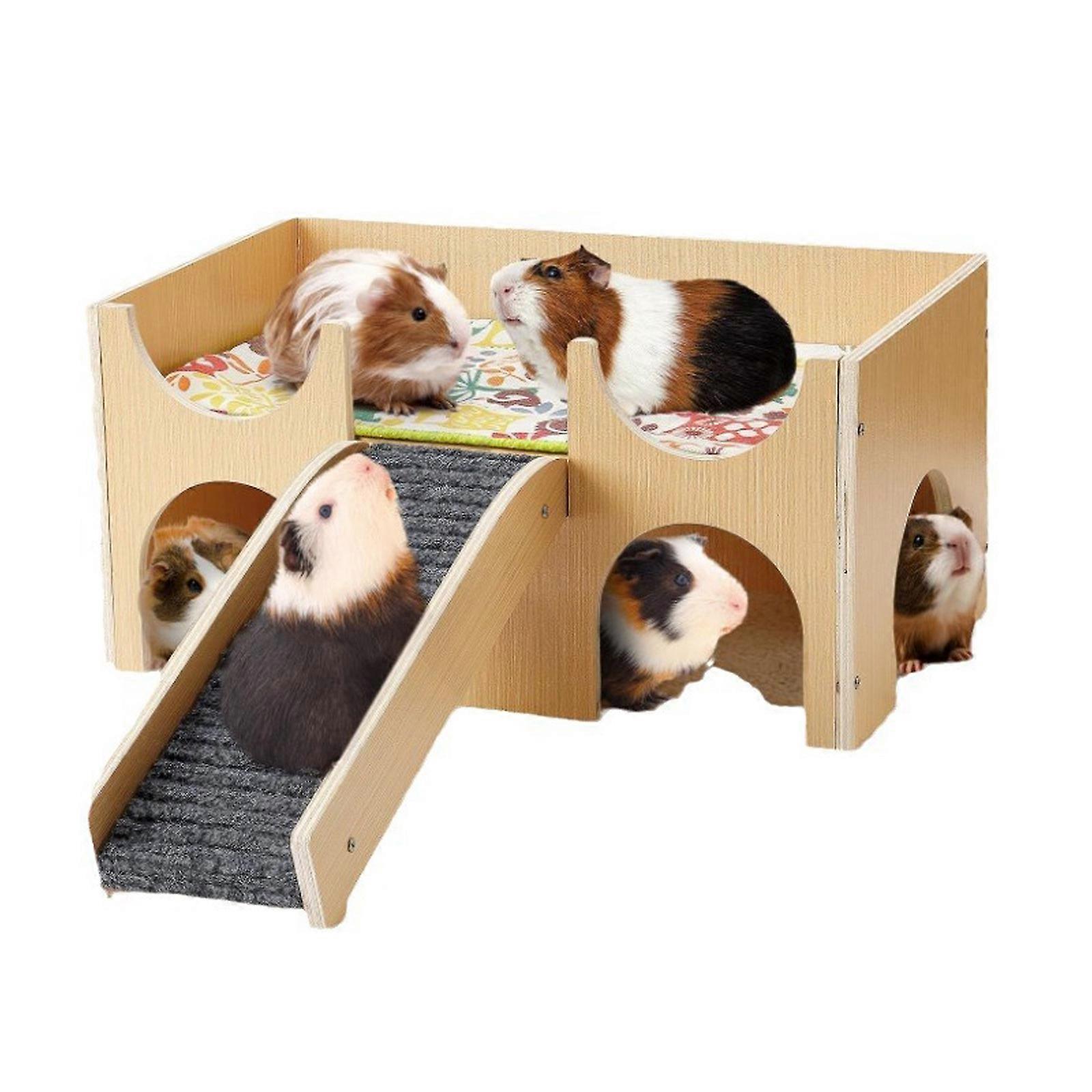 Hamster House Hideouts Climbing Stair Small Animal Habitat Natural Wood Play House Chews Toy for Dwarf Hamster Multicolor