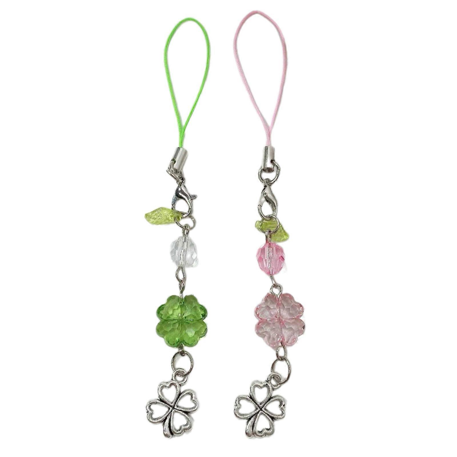Four Leaf Clovers Bead Phone Lanyard Charming Lucky Clovers Phone Jewelry Easy Attach Bead Accent Phone Chain Lanyard Multicolor
