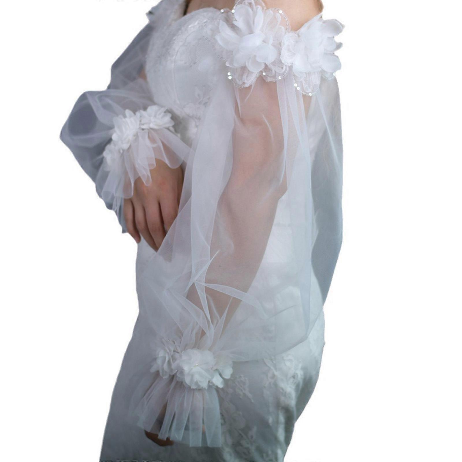 Detachable White Mesh Arm Sleeves Bride Wedding Arm Cover Decorate Ruffle Sleeve for Bridal Arm Sleeve with Flower Multicolor