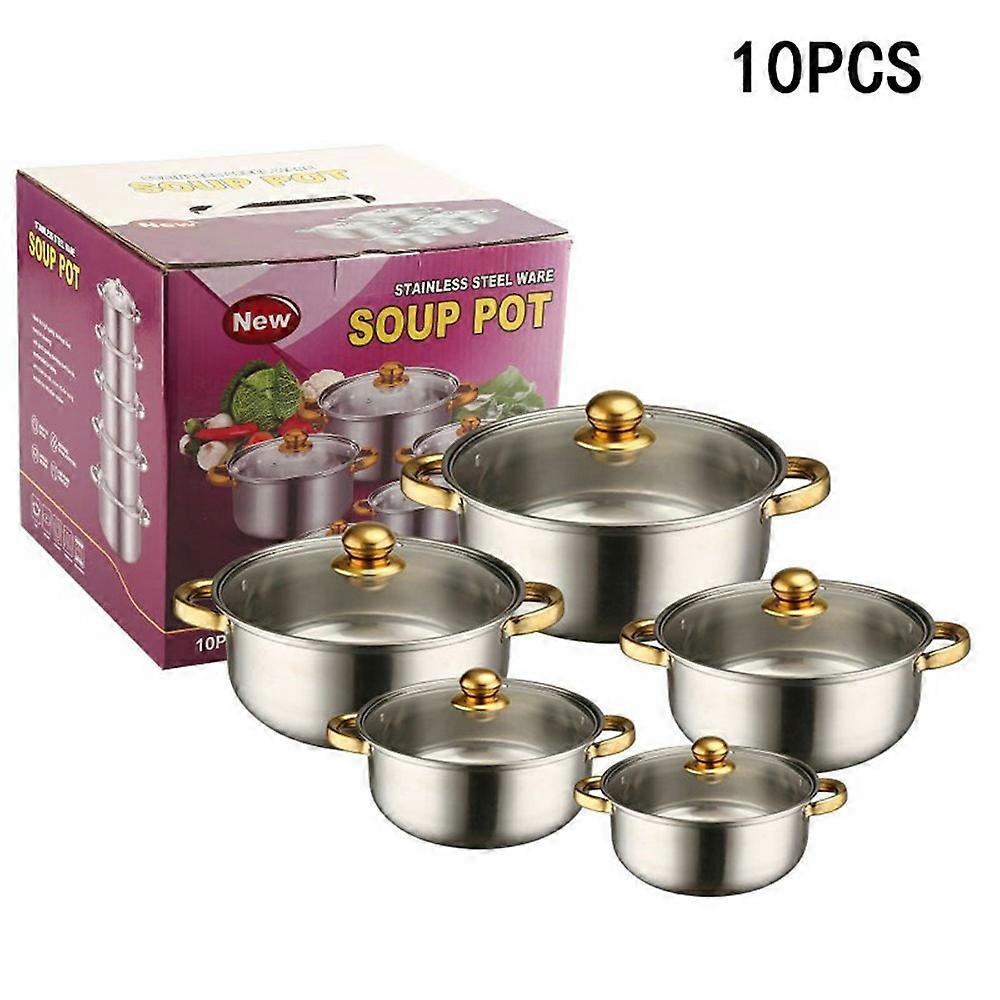 5PCS Stainless Steel Stock Pots Set 18-26cm Steamer Soup Pots with 5PCS Glass Lids