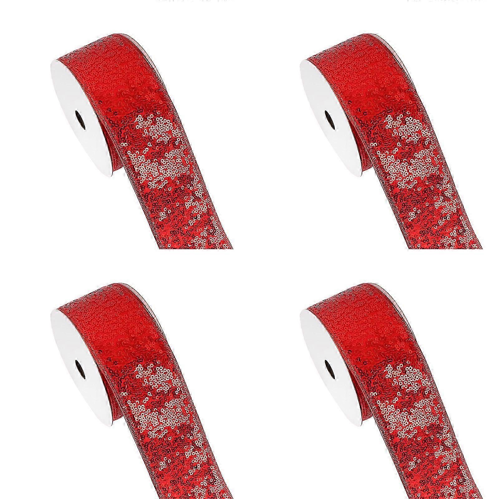 4 Rolls Christmas Ribbons compatible Tree Adornment Present Wrapping Decoration Tape Colorful Sequins Silk Ribbons Ornament light blue hk