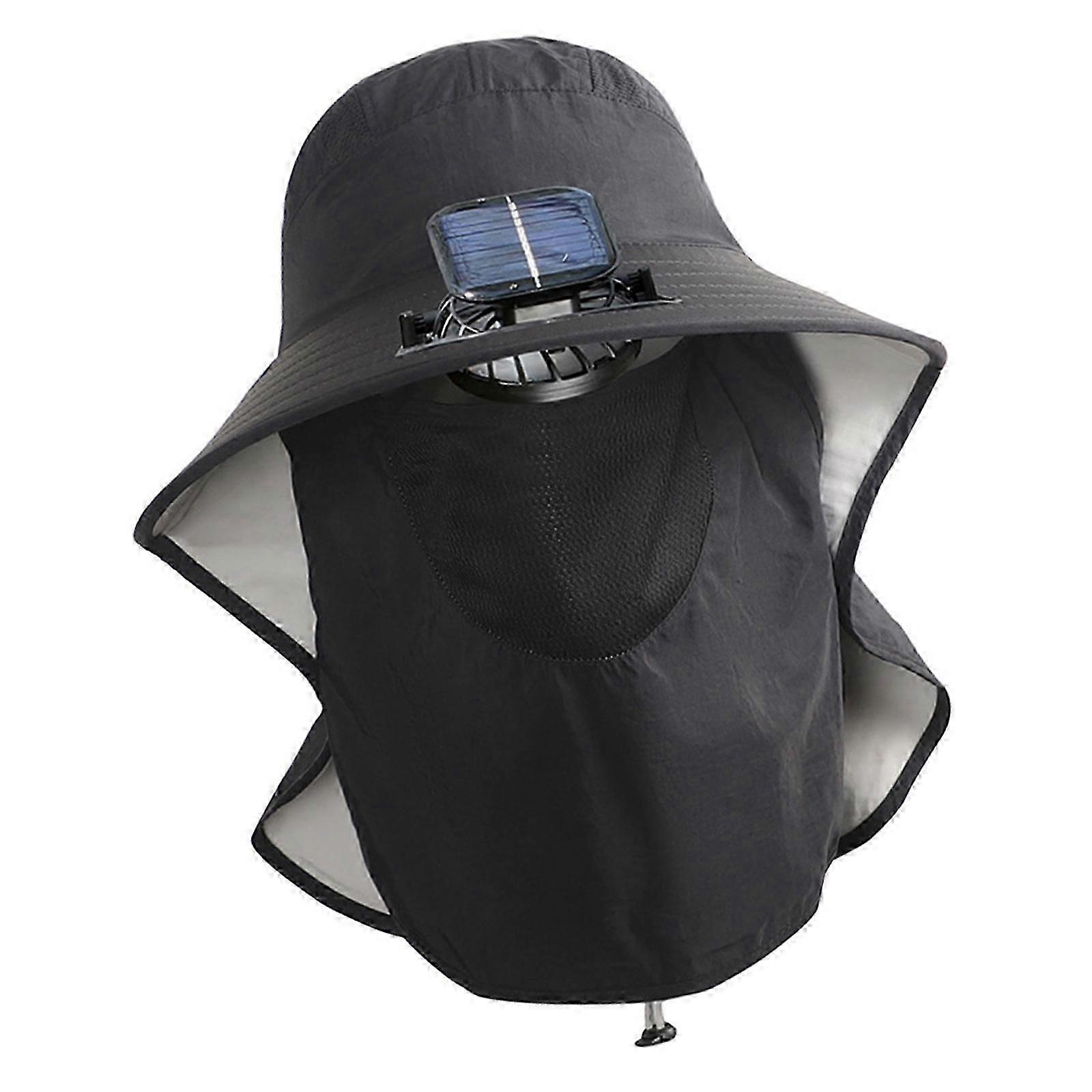 Breathable Solar Fan Hat Adjustable Speed Rechargeable Fisherman Hat Unisex Sun Protective Hat compatible Outdoor Activity Light gray hk