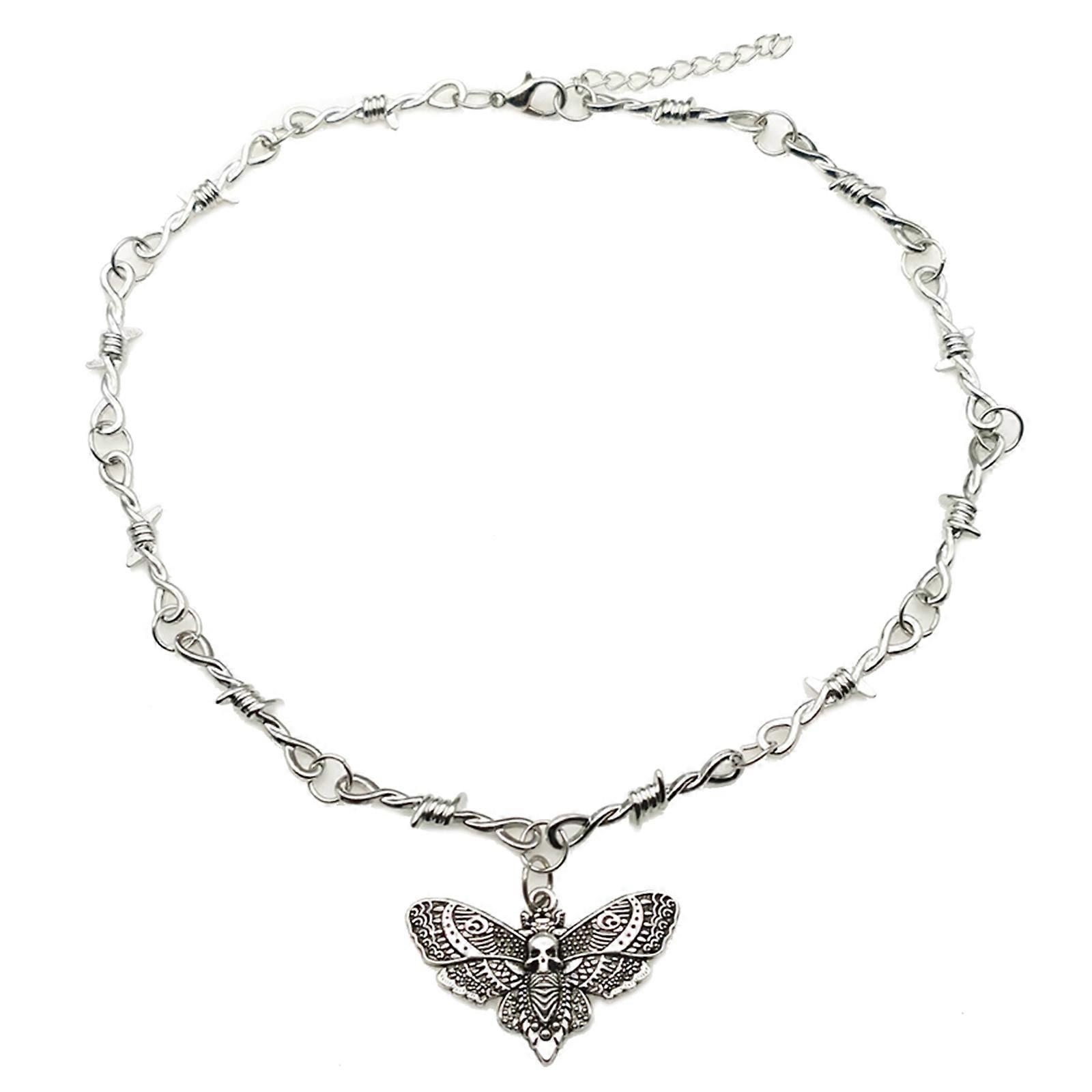European and American Hip-hop Punk Thorns Skull Moth Choker Necklace Retro for Creative Trendy Men's Alloy Pendant Jewel Multicolor
