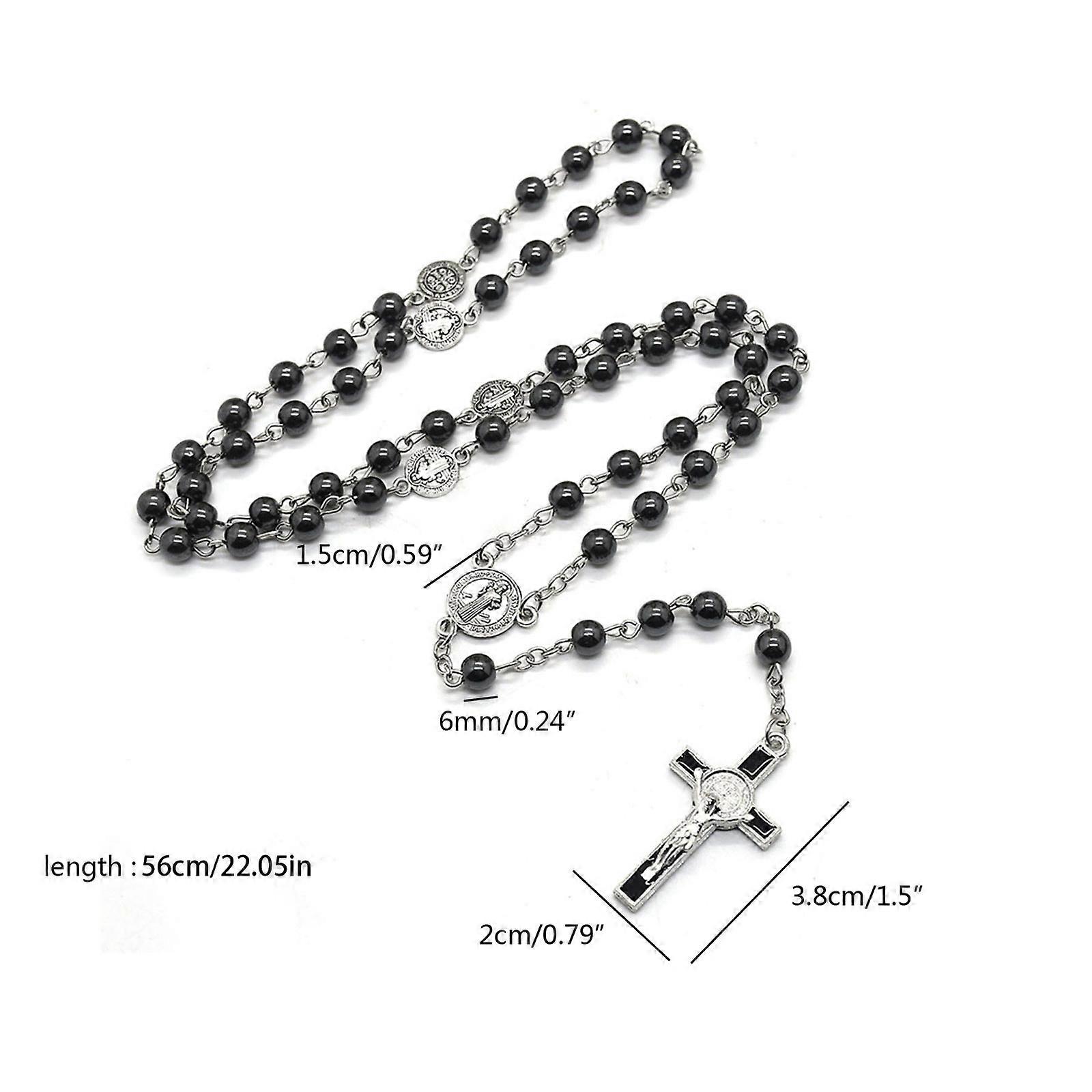 Saint Benedict Black Gallstone Rosary Necklace Catholic Prayer Black Beads High Quality Christ Prayer Rosary Necklace Multicolor