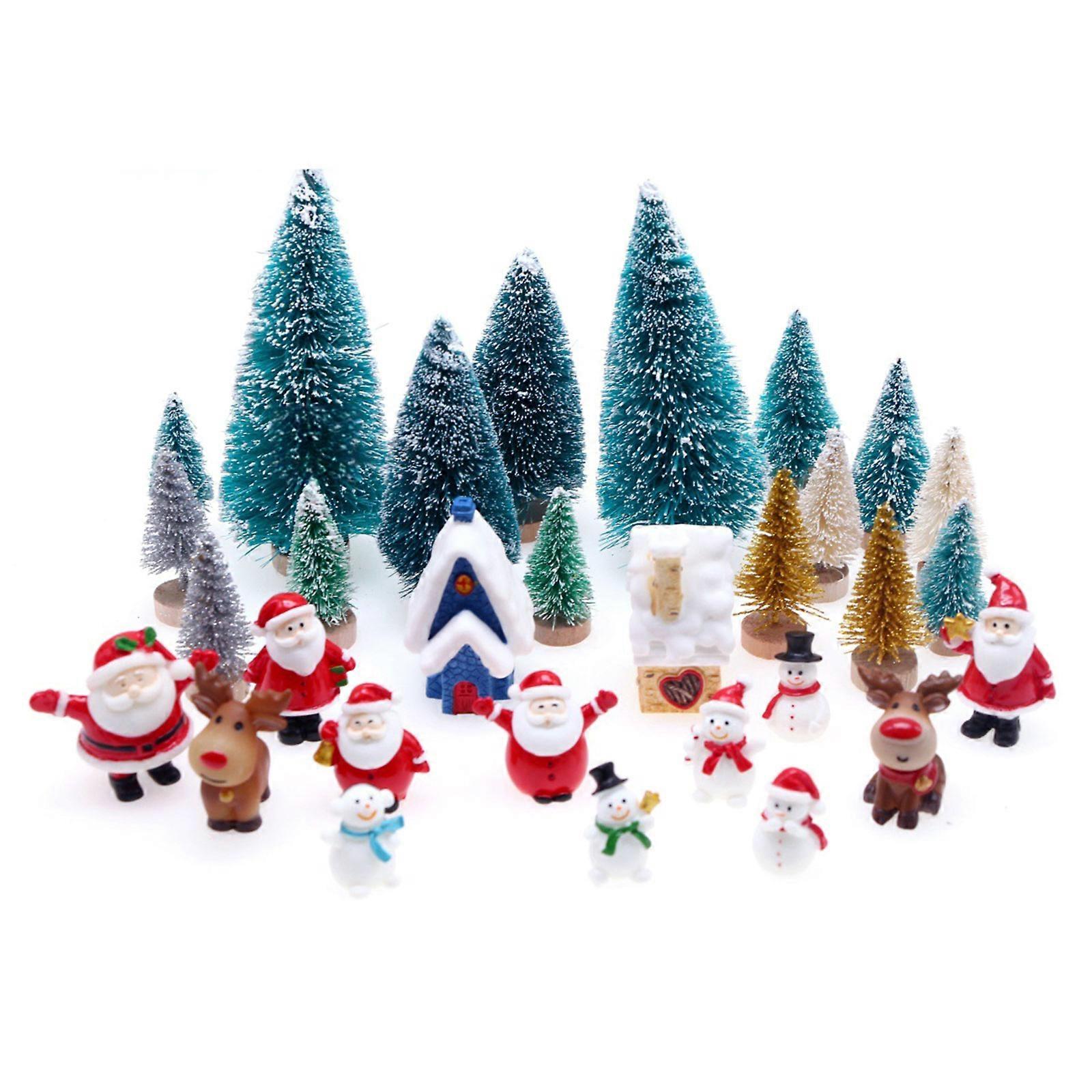 Dollhouse Christmas Scene Ornaments Mini Snowmen Reindeer Santa Pine Set Pretend Realistic Miniature Accessories Multicolor