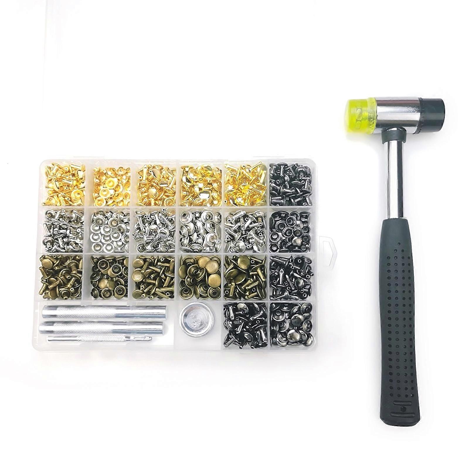 480x Leather Rivets Double Caps Rivets Metal Leather Rivets Kits with Double Headed Harmmer for DIY Leather Crafts Multicolor