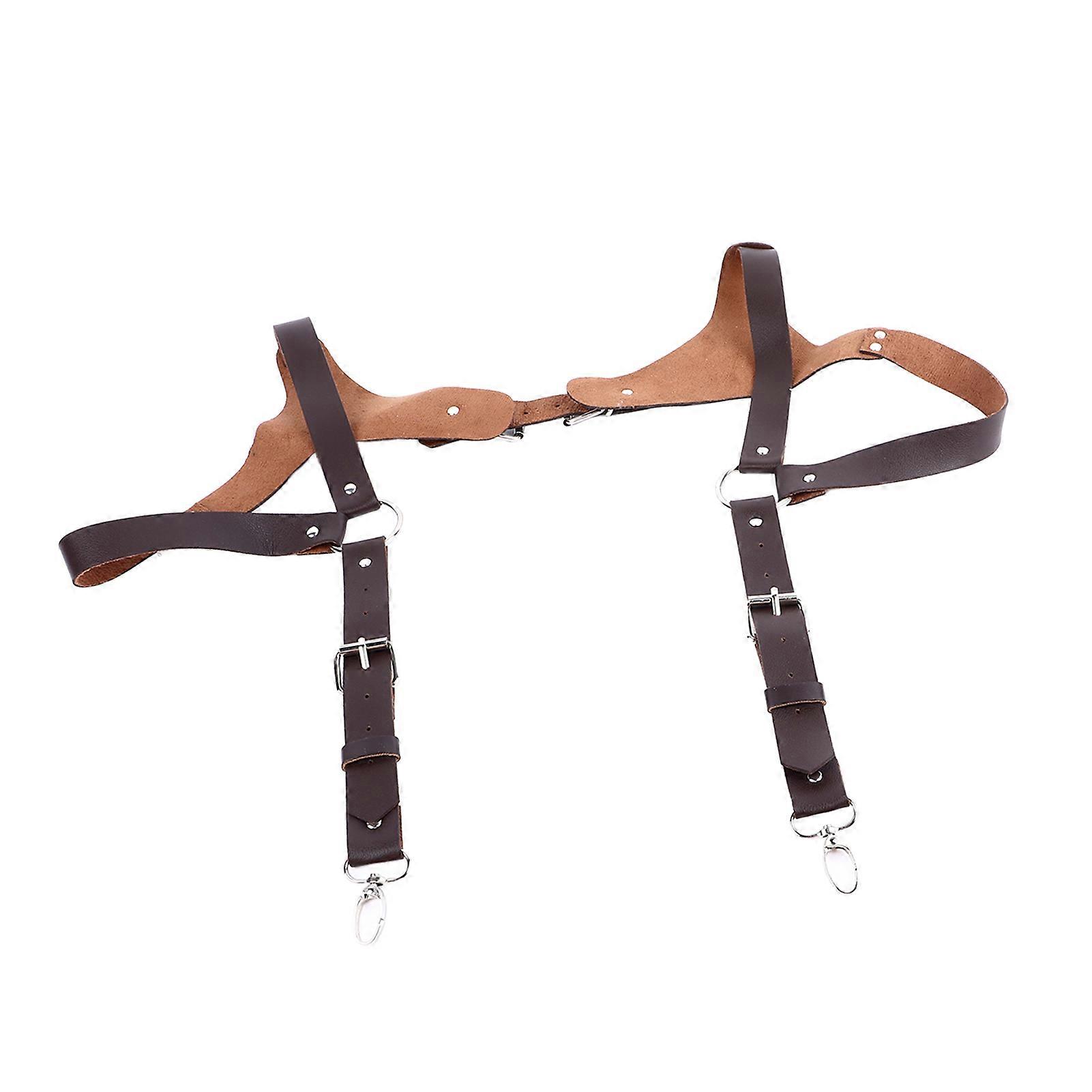 Adjustable Sturdy Vintage Style PU Leather Renaissance Men Suspenders for Parties Business Gatherings
