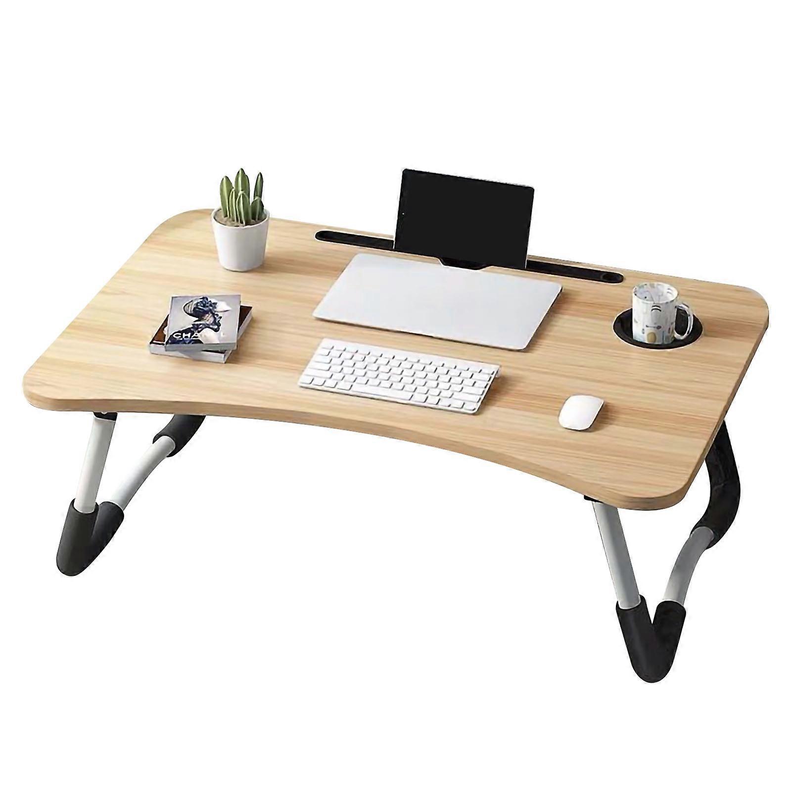 Kids Laptop Desk with Cup Holder Density Board Foldable Bed Table for Household Bedroom