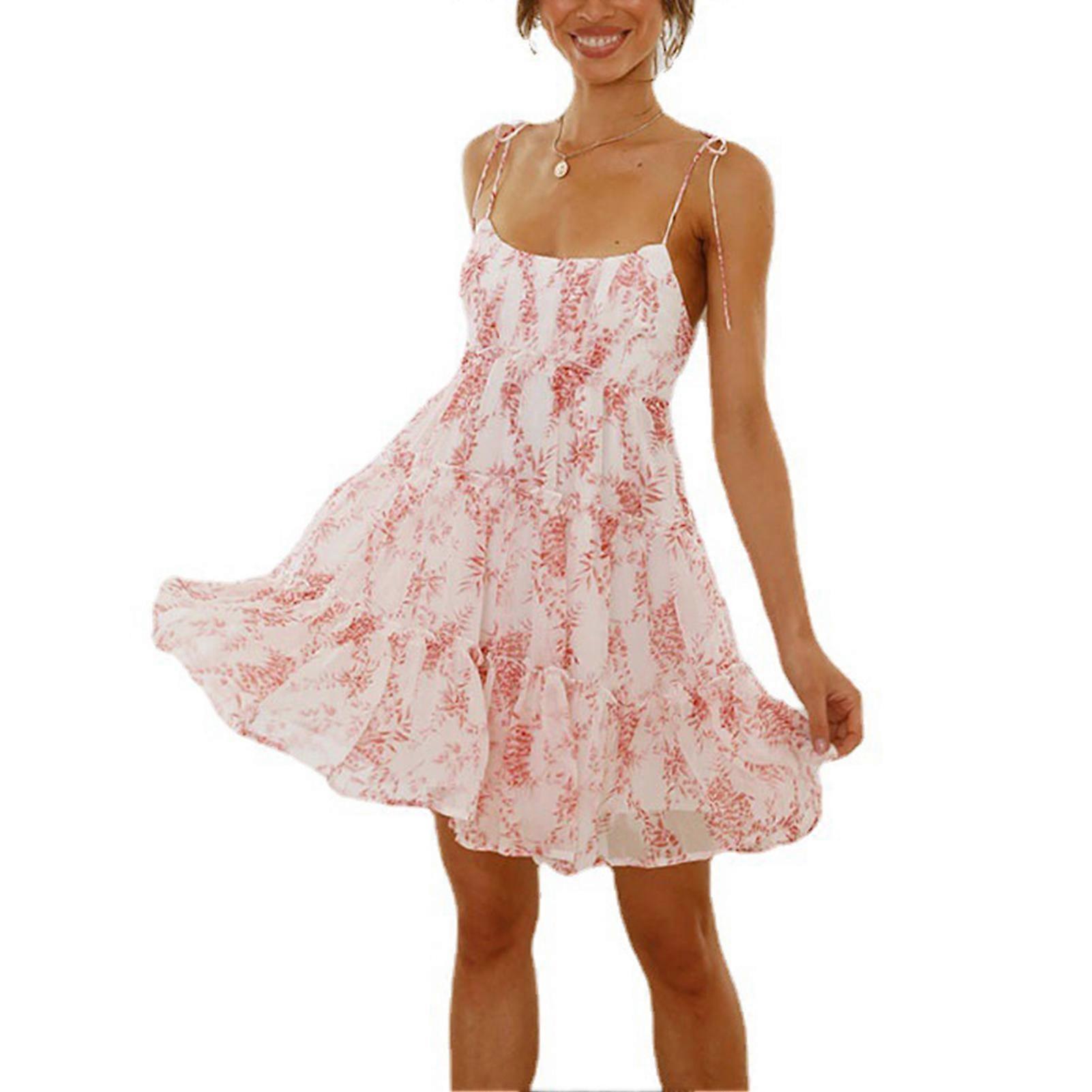 Boho Backless Smocked Sleeveless Casual Flowy Ruffle Womens Summer Floral Dress for Travel Picnic Vacation Beach